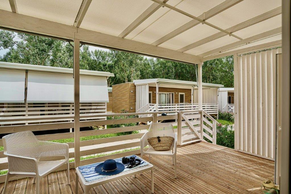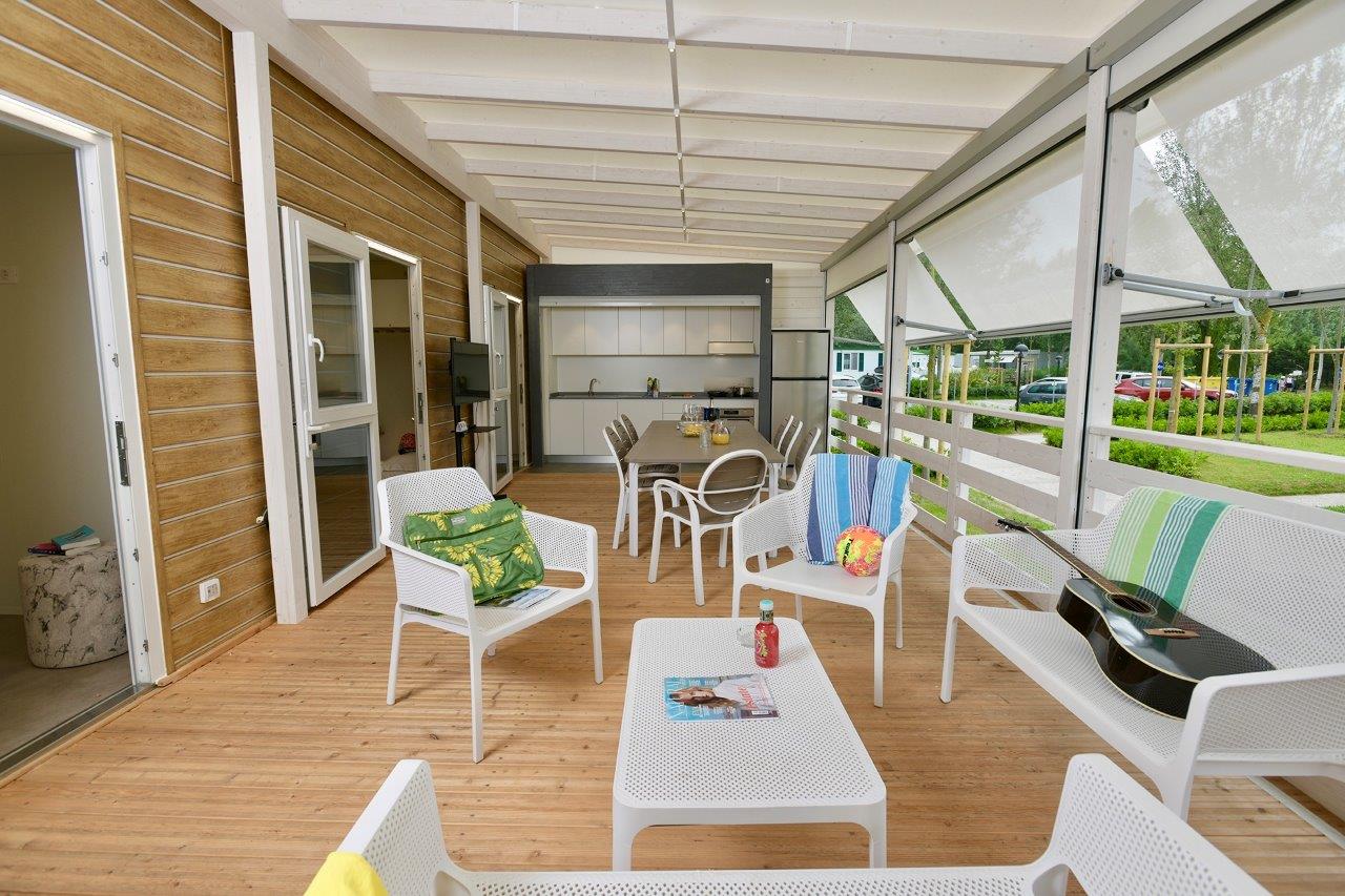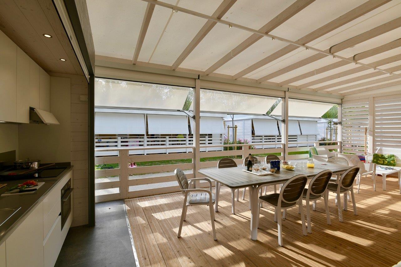 Plus della Bellagio Small: un’ampia terrazza coperta, a garanzia di privacy e ombreggiatura arredata per godersi pranzi e cene all'aperto.