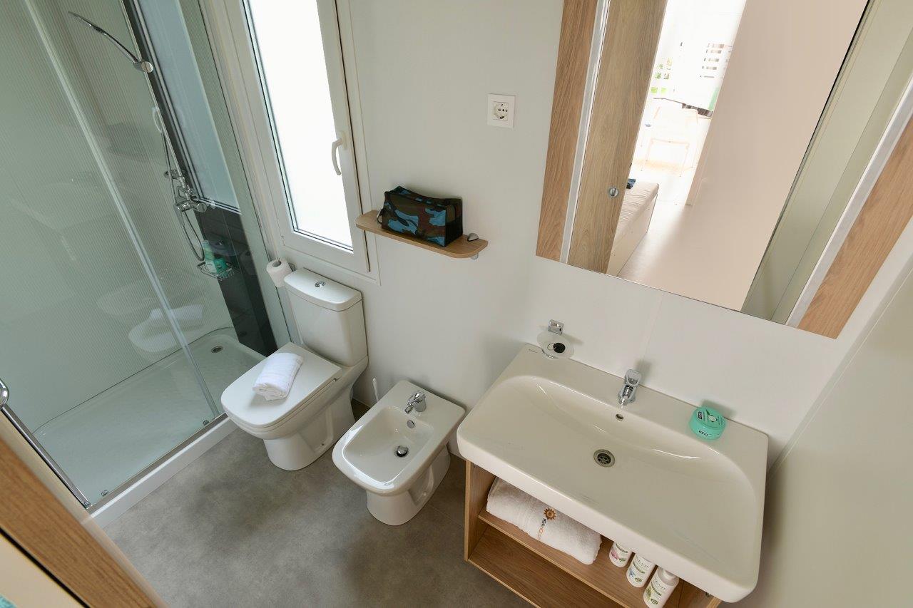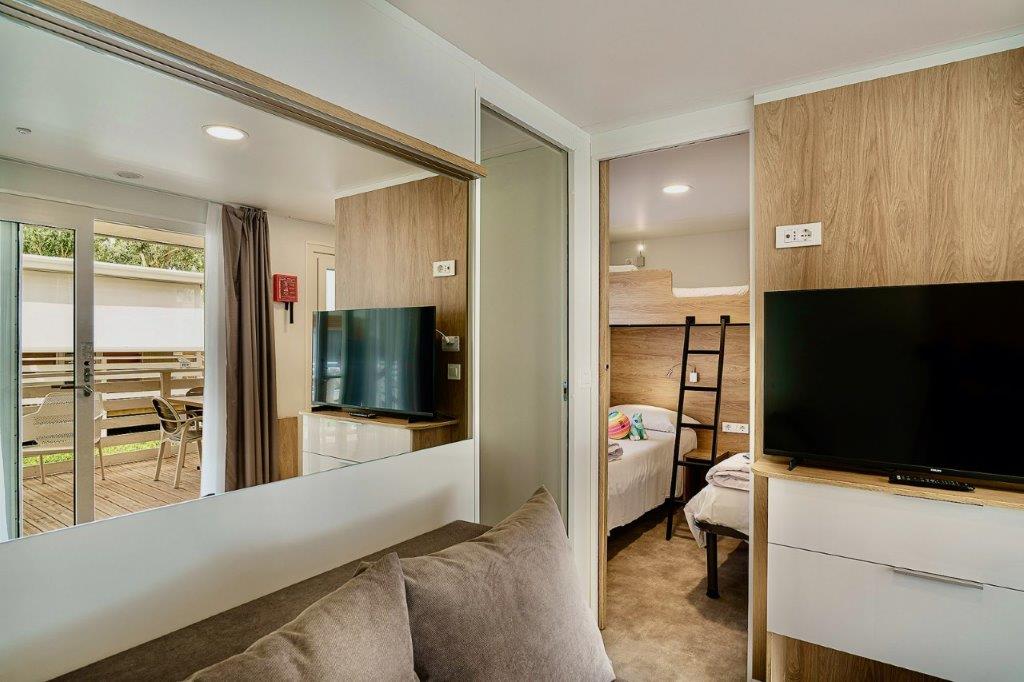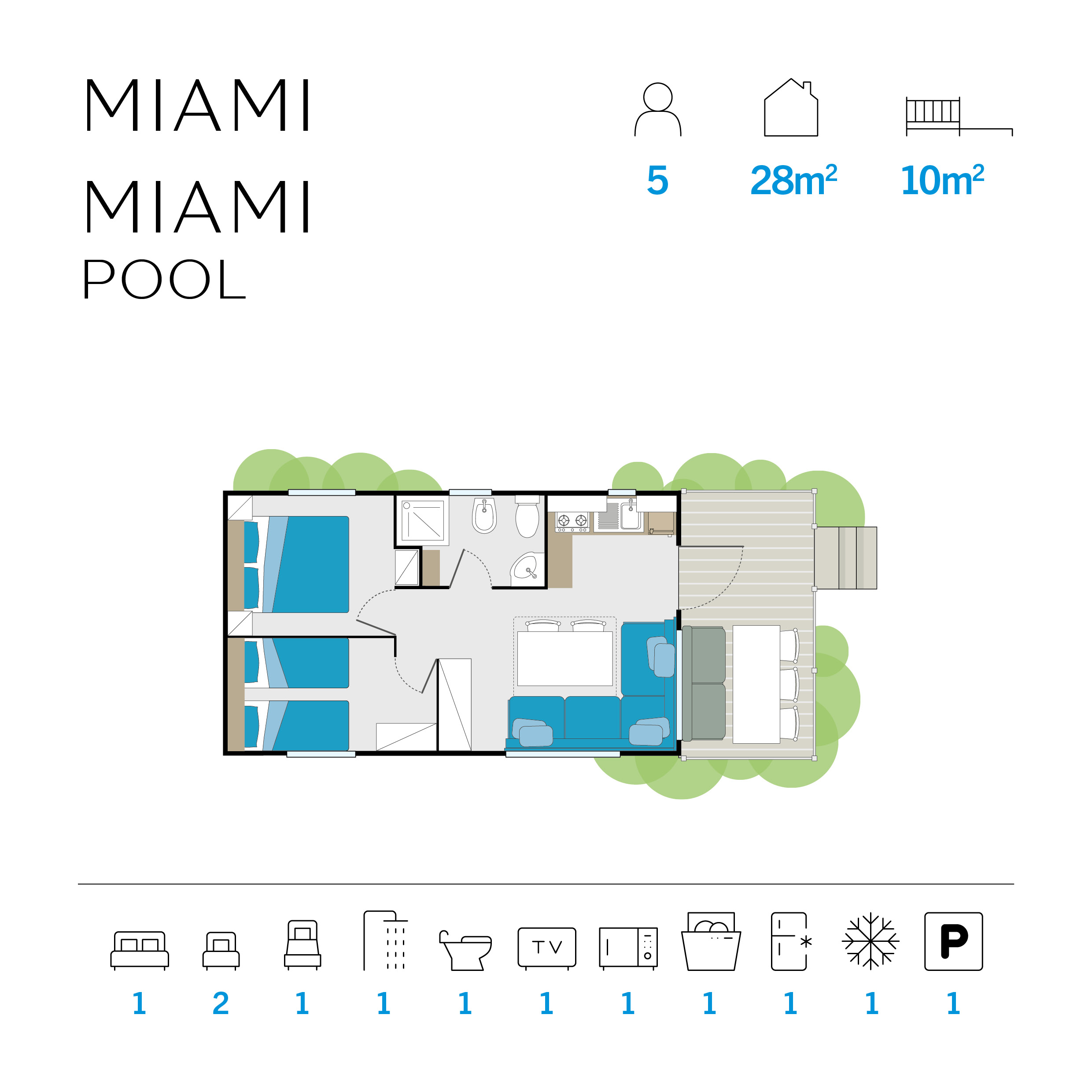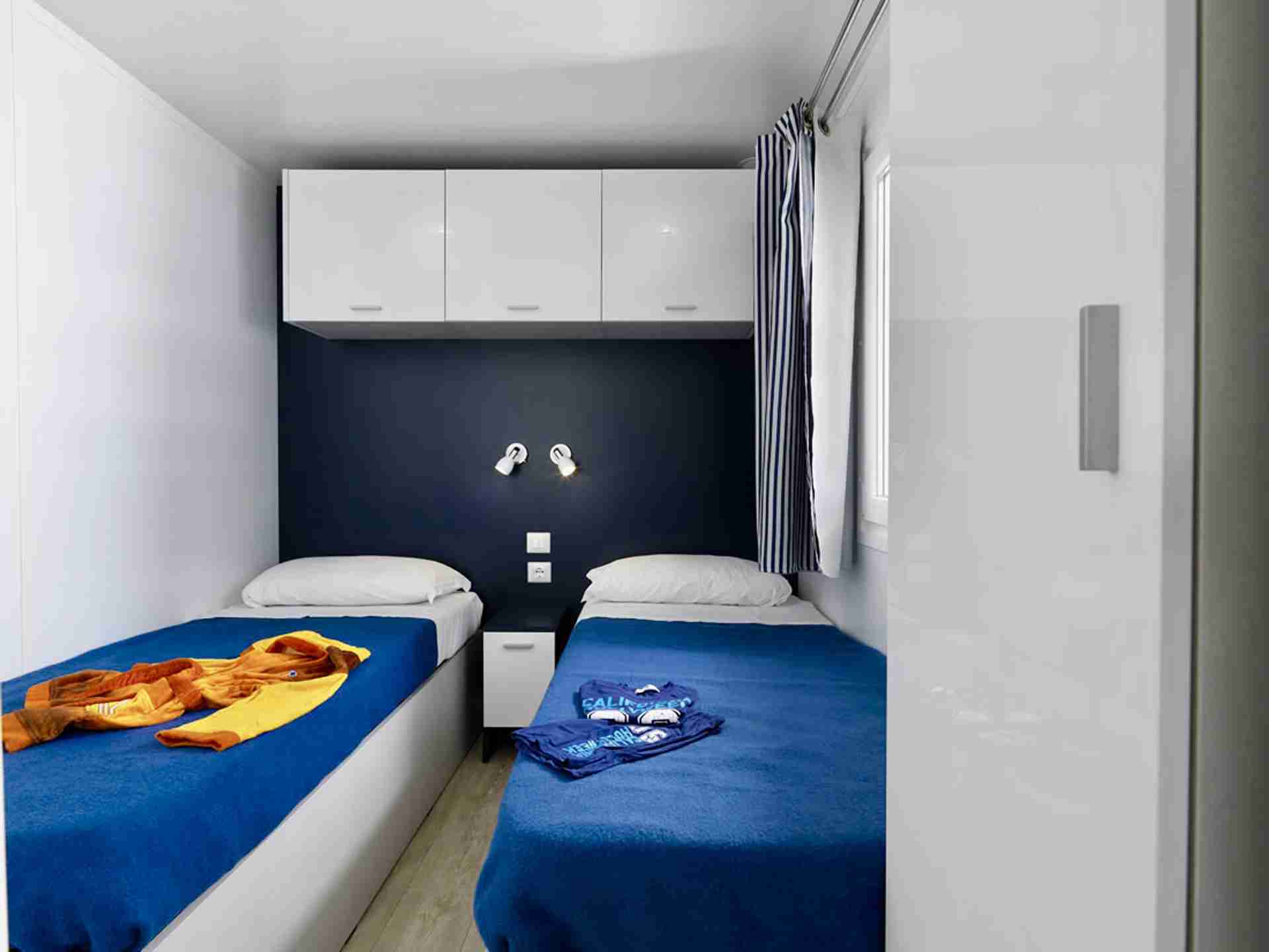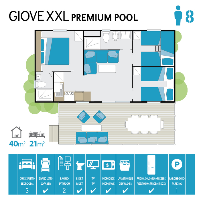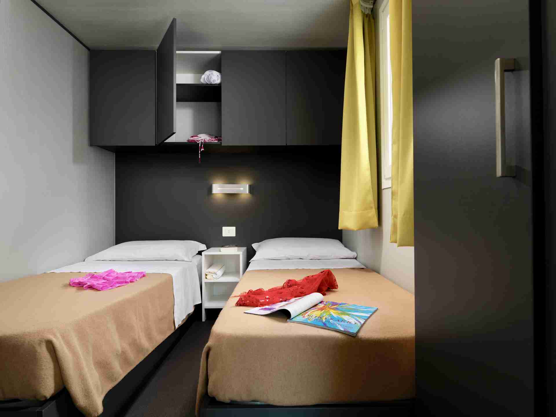 Sirio POOL è una lussuosa mobile home caratterizza da spazi generosi e arredi raffinati, dove trovano posto 1 camera matrimoniale con bagno en suite, una cameretta con secondo bagno, cucina e zona pranzo.