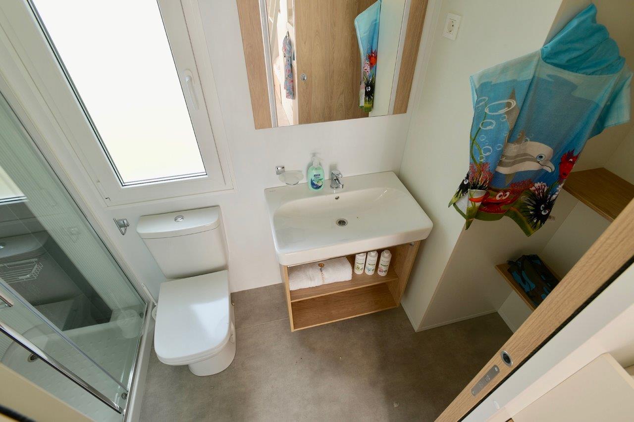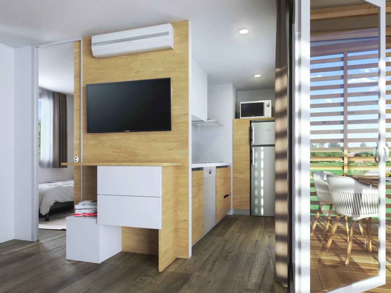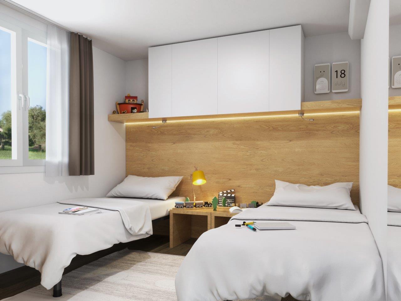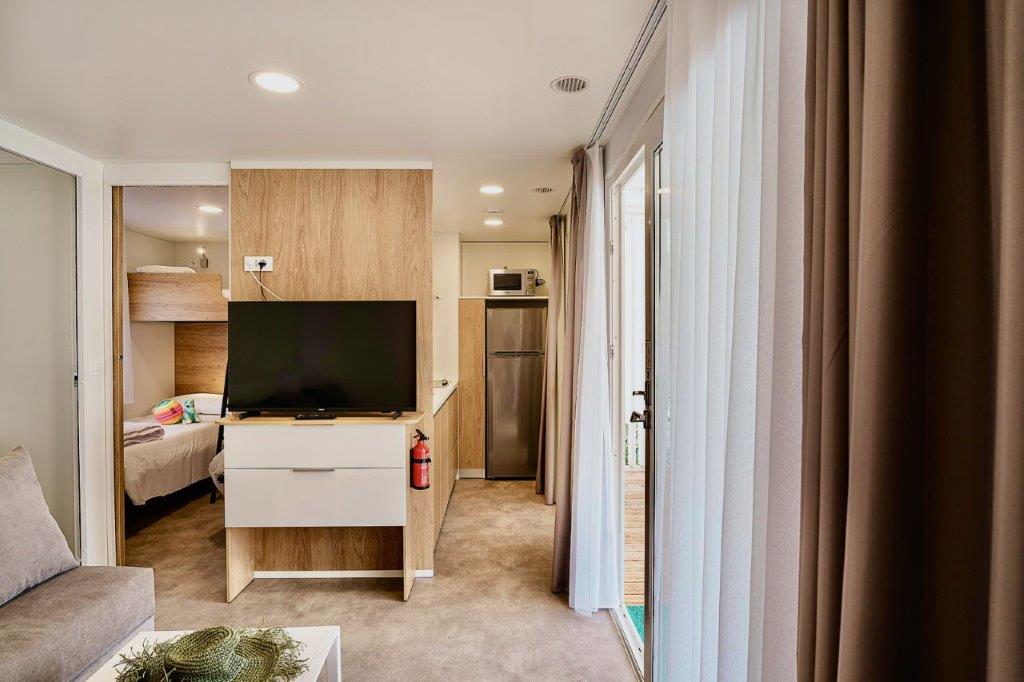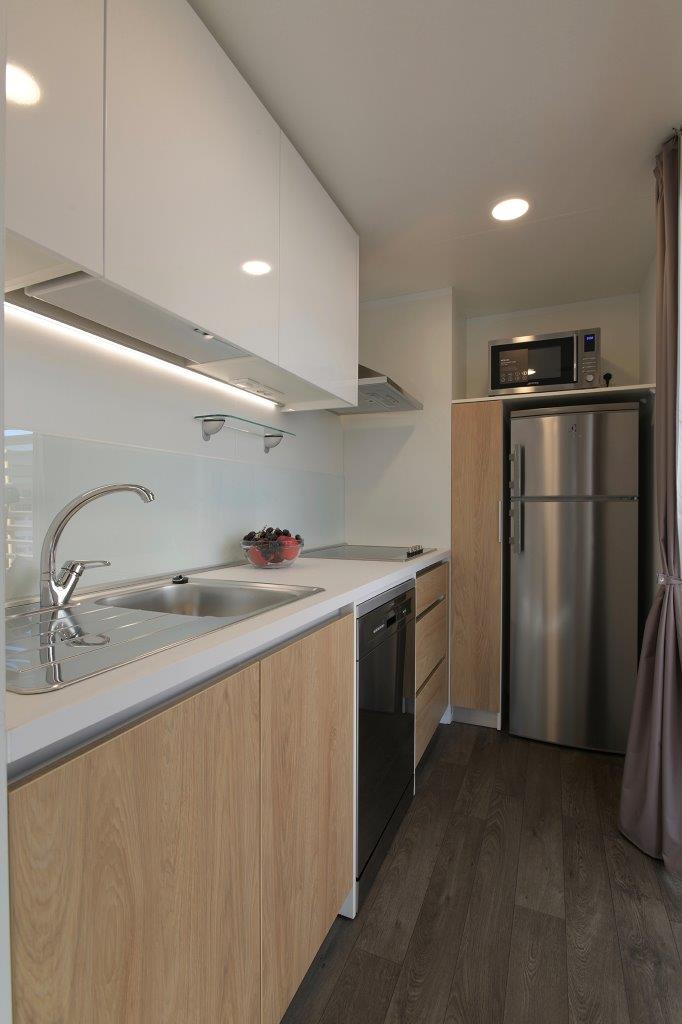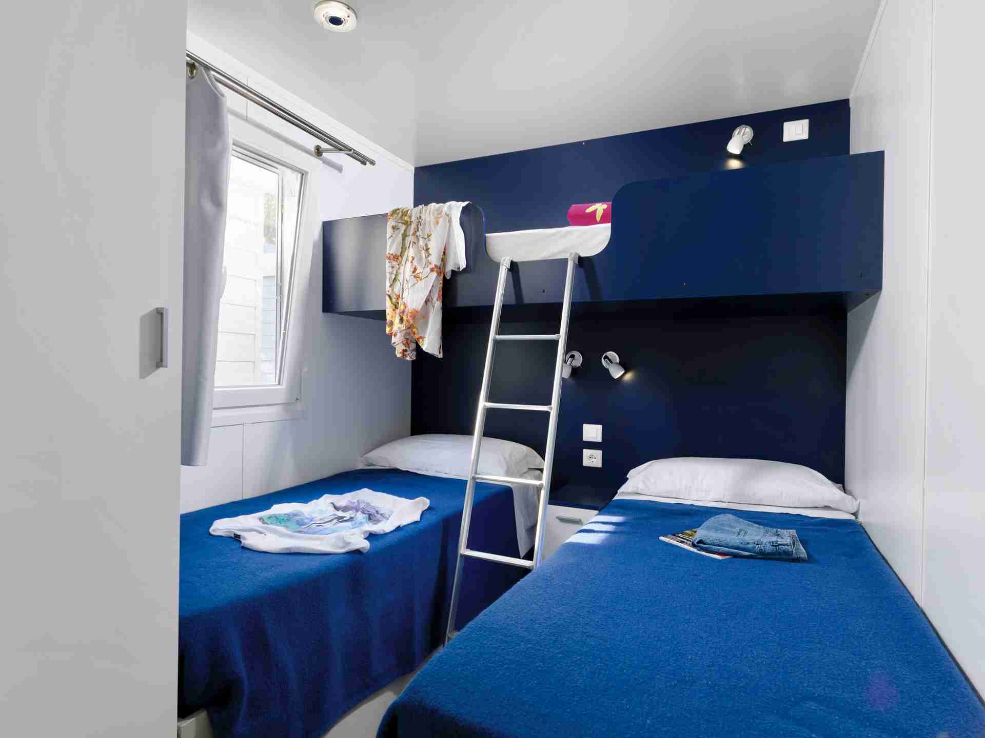 Sirio POOL è una lussuosa mobile home caratterizza da spazi generosi e arredi raffinati, dove trovano posto 1 camera matrimoniale con bagno en suite, una cameretta con secondo bagno, cucina e zona pranzo.
