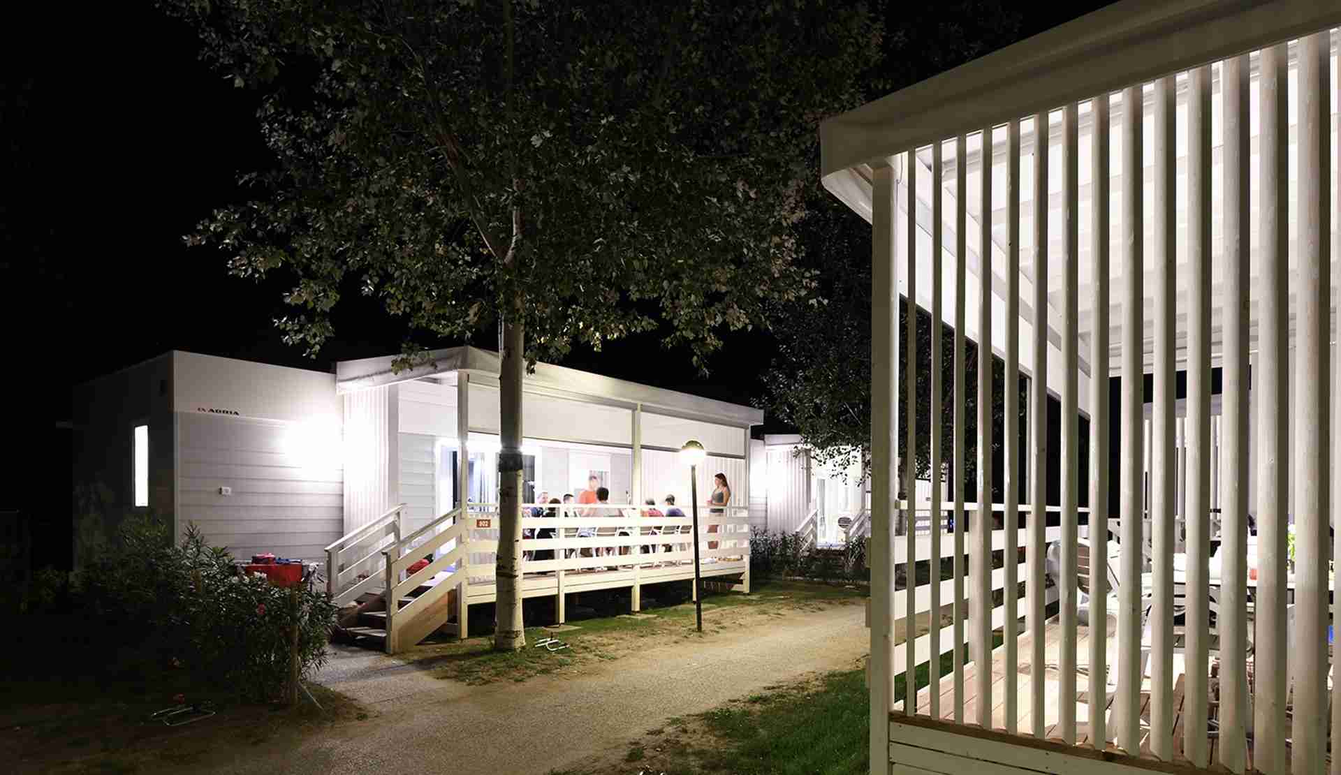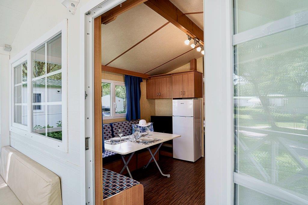 Elegante casa mobile posizionata nella zona centrale del villaggio, tra viali pedonali alberati e fioriti.