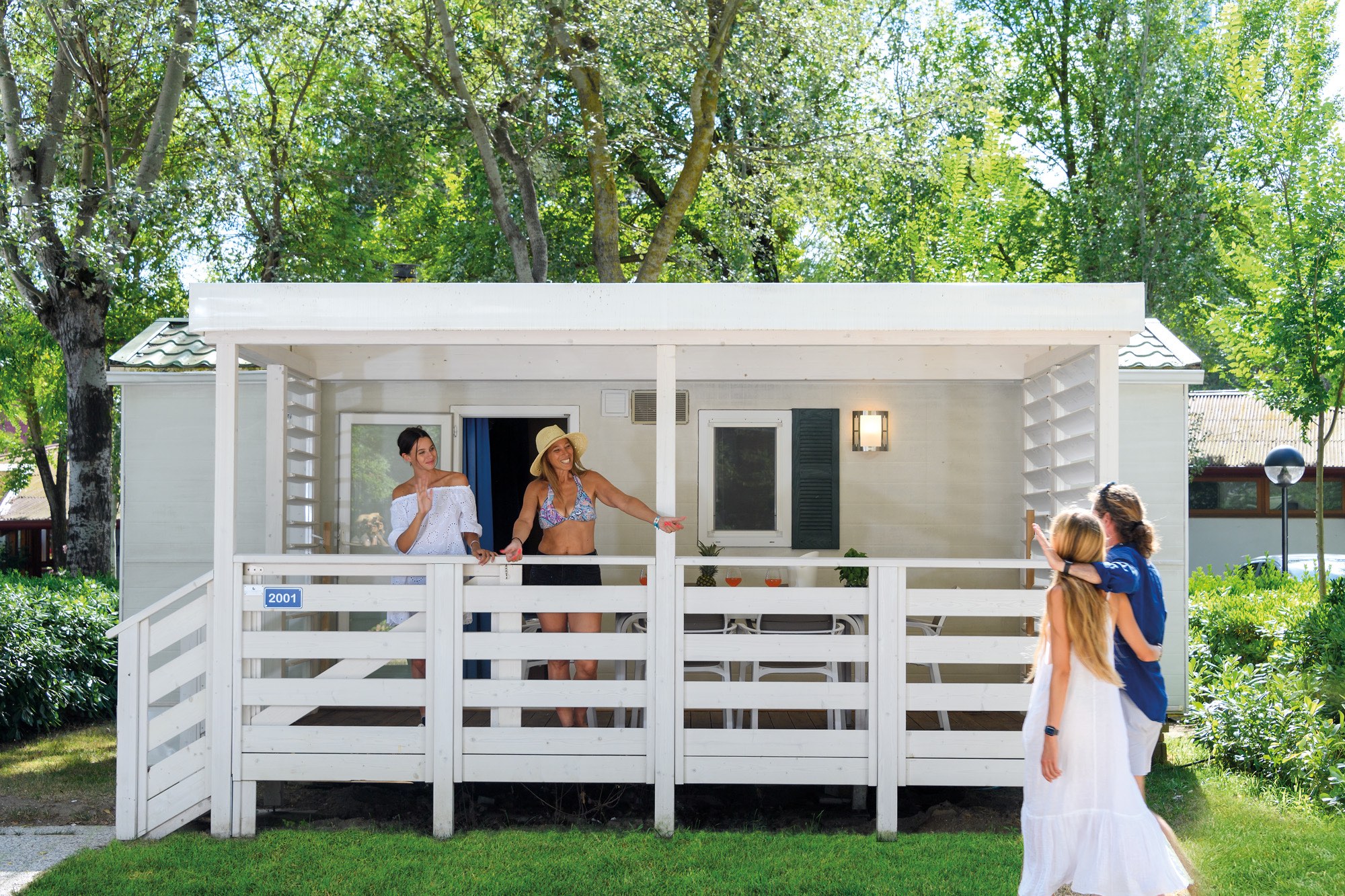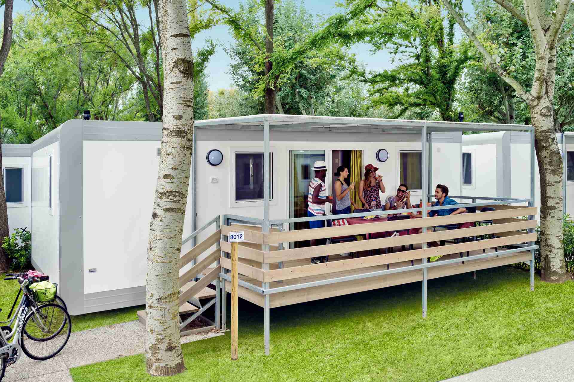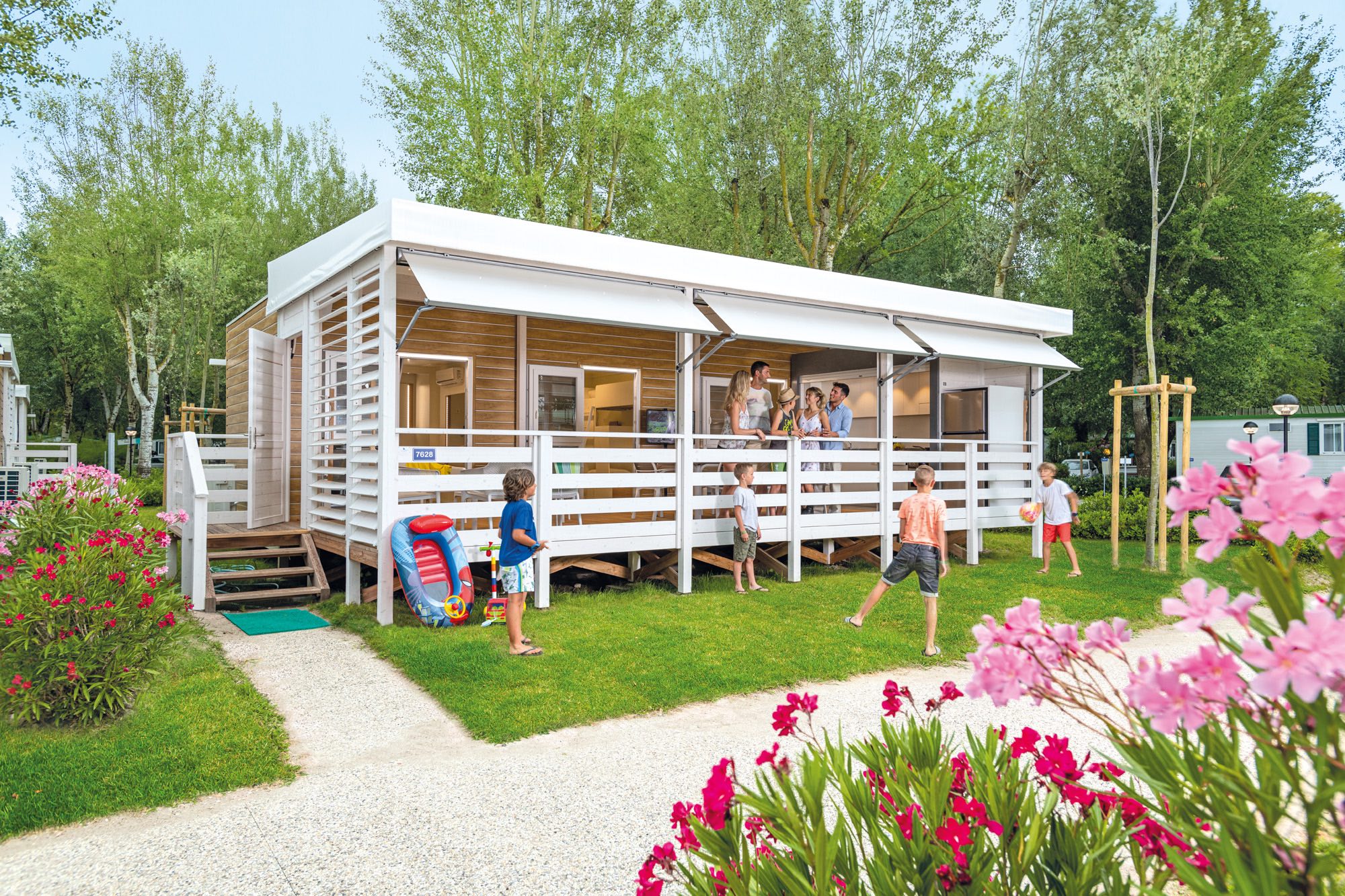 Lussuosa casa mobile posizionata nella zona centrale del villaggio, tra viali pedonali alberati e fioriti.