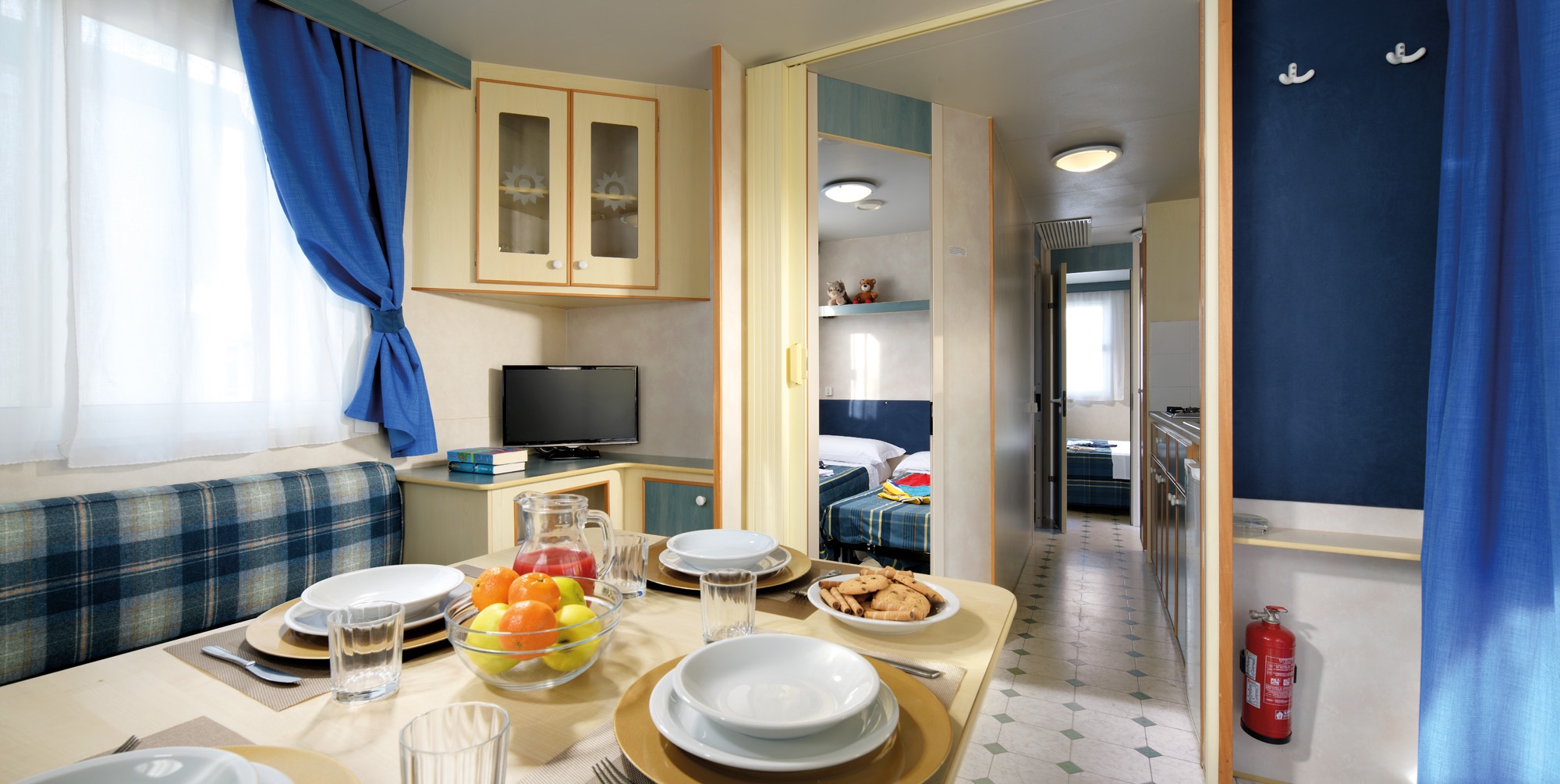 Casa mobile posizionata nella nuova area residenziale pedonale situata tra il centro commerciale e il Ristorante principale con la sua piscina antistante, comoda a tutti i servizi centrali.