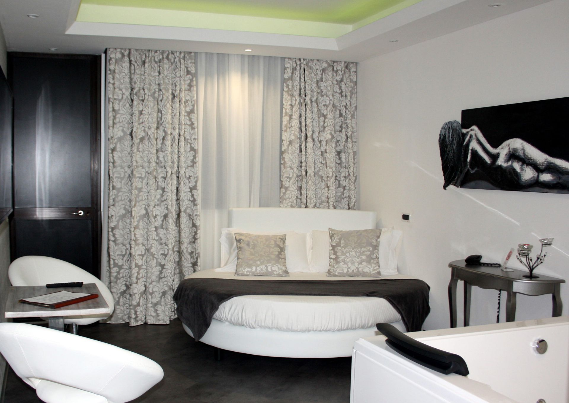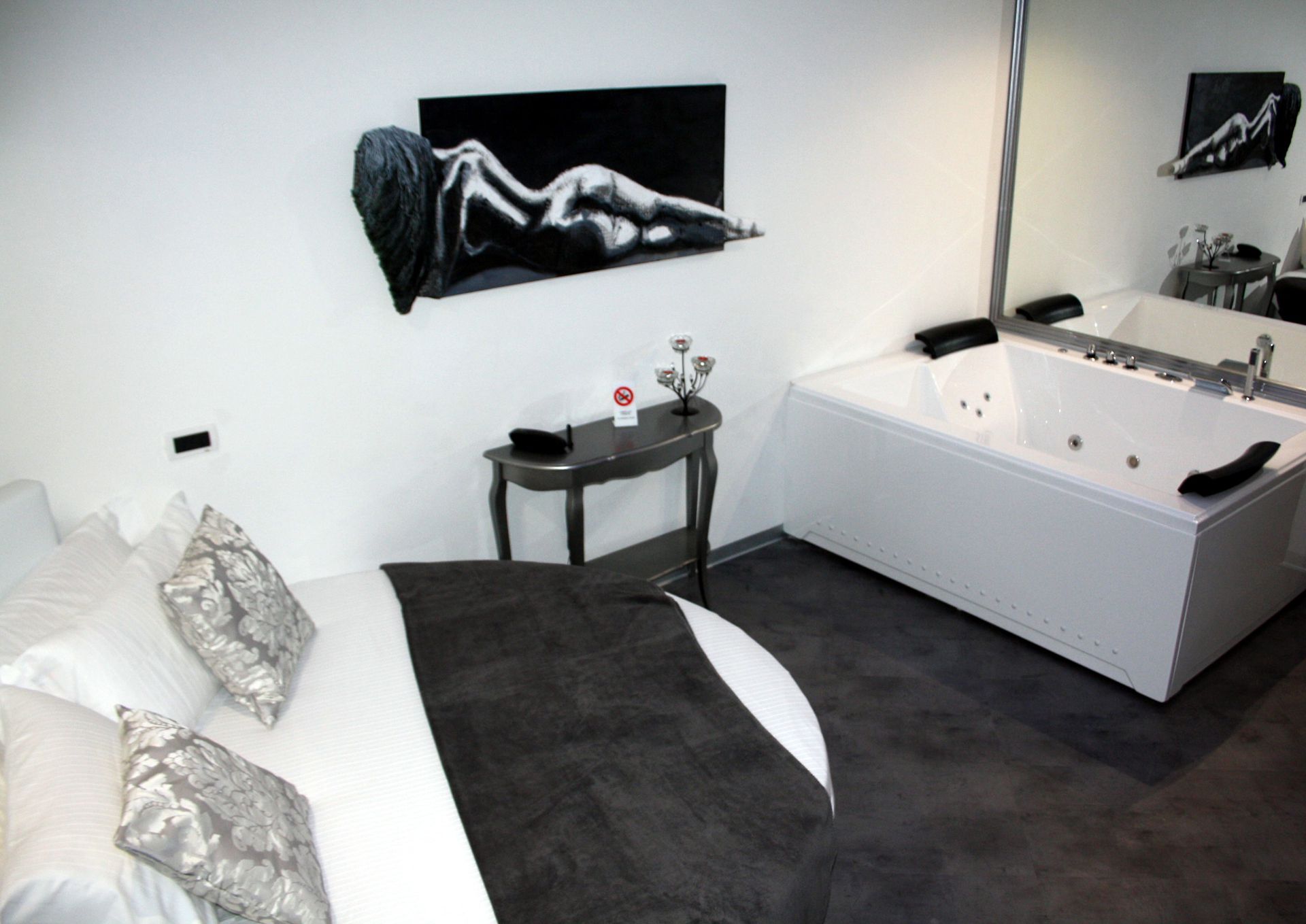 De Luxe room with Jacuzzi, Think for those who take a little time, be pampered bya whirlpool with scented salts in a cool and refined in the same way, and then relax wrapped in comfortable bathrobes.The De Luxe with tub are both on the ground floor and on the first floor, they differ for the furnishings while maintaining the same comforts, the rooms on the first floor have access to Wi-Fi internet.The amenities of the room are:Minibar, direct dial telephone, LCD TV bathroom kit for personal hygiene, non-slip slippers, hairdryer, bathrobes.Free parking in front of the ground floor room.Free garage for first floor rooms.