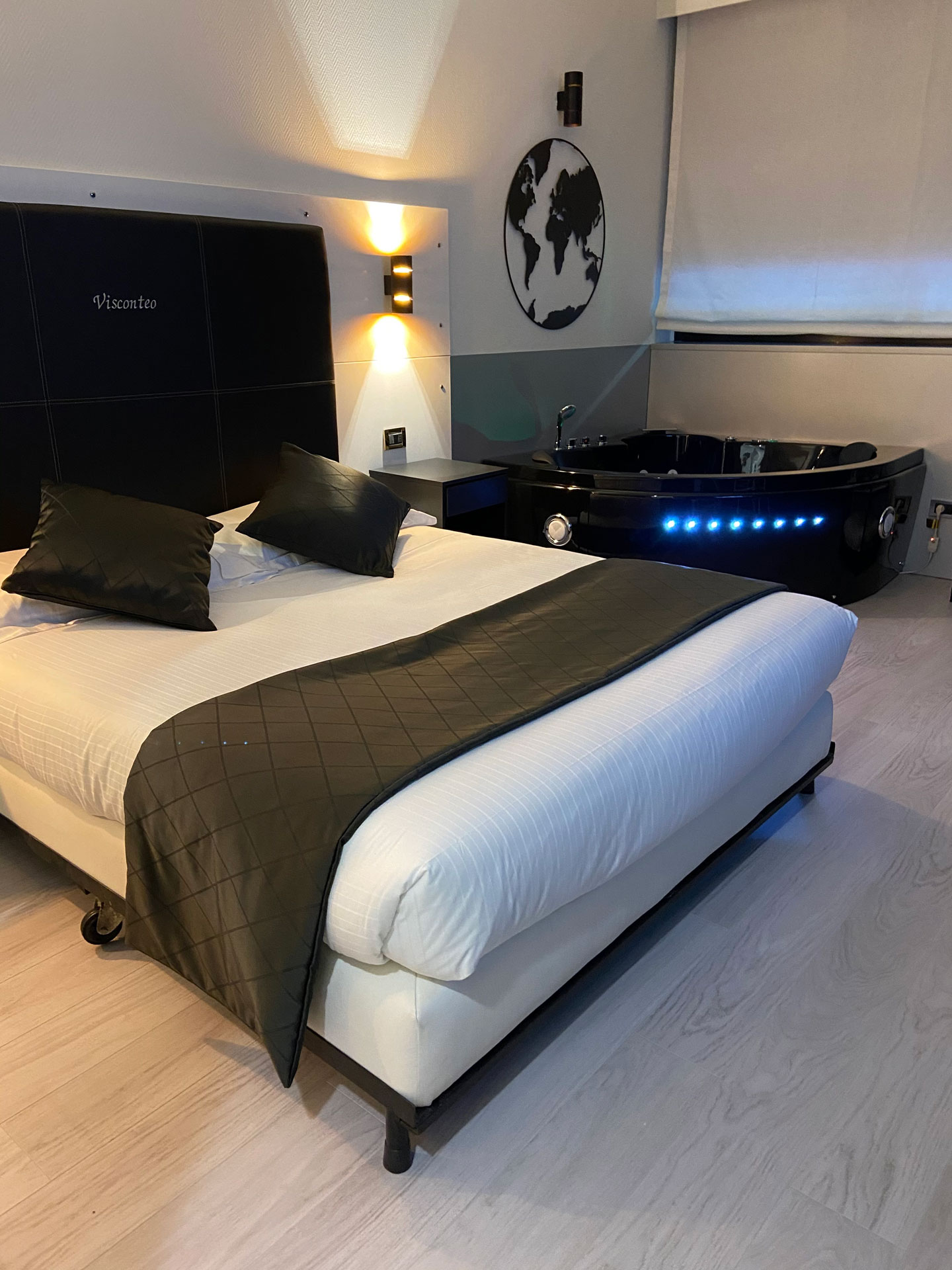Emotional Suites with Jacuzzi you can indulge in relaxing moments without giving up anything, even choosing the ideal atmosphere, thanks to the illuminated ceiling that changes color. All at a very special price. If you are looking for a Motel with Jacuzzi in Milan and surroundings, you have found what you were looking for! Motel Visconteo If you are looking for a Motel with Jacuzzi in Milan and surroundings, and a Suite with a comfortable and relaxing Jacuzzi, you have found what you are looking for! The Emotionale Suite with Jacuzzi is designed for those who want to take some time , be pampered by a relaxing bath with scented salts in an exciting and refined environment in the same way, and then relax wrapped in comfortable bathrobes. But you will not only find a comfortable whirlpool bath, theEmotional Suite is a real whirlwind of emotions with its splendid round double bed and the backlit ceiling to always create different atmospheres depending on how you want to spend your 4 hours. The Emotional Suite with Jacuzzi is on the ground floor with Wi-Fi internet access. The Room Service will be at your complete disposal for a fresh brunch in your room in total privacy and relaxation. From today, treating yourself to a stay in these special and modern rooms is even cheaper, thanks to the Best Guaranteed Rate by booking directly online! Discover also our Special Offers! Motel Hot Tub Milan Day Use formula The Motel Day Use formula will allow you to stay in any of our rooms with the same identical quality standards as the overnight stay in the Hotel, meeting the frenetic pace of the city you can rest or have a romantic moment just for you in a refined and very private environment. Without the hassle of the fixed times of traditional hotels that offer a daily "Day Use" starting from 10.00 am until 6.00 pm. With us you will be welcome at any time and you will always find our staff ready to welcome you.