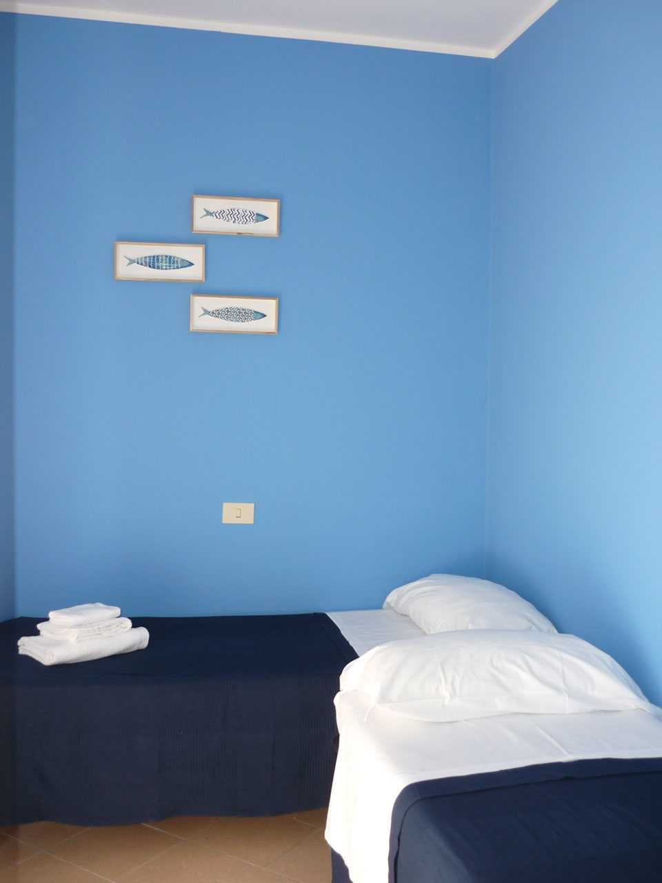 I nostri quadrilocali sono appartamenti di 90 mq, composti da una luminosa sala da pranzo con tavolo fino a 8 persone, con letto singolo ed angolo cottura, una camera matrimoniale e due camere con letti singoli. Hanno aria condizionata in ogni stanza, tv e wi-fi e bagno con doccia. Tutti i nostri appartamenti hanno un piccolo giardino privato con tavolo e sedie dove potersi rilassare dopo una giornata di mare. Primo piano con scale.