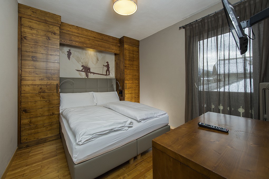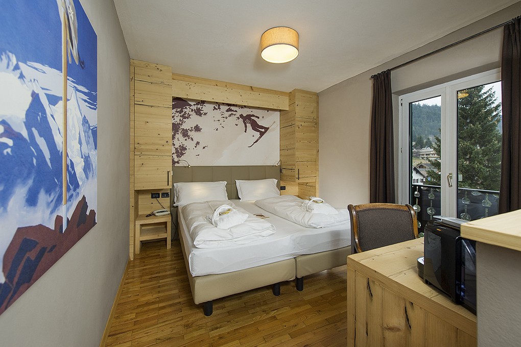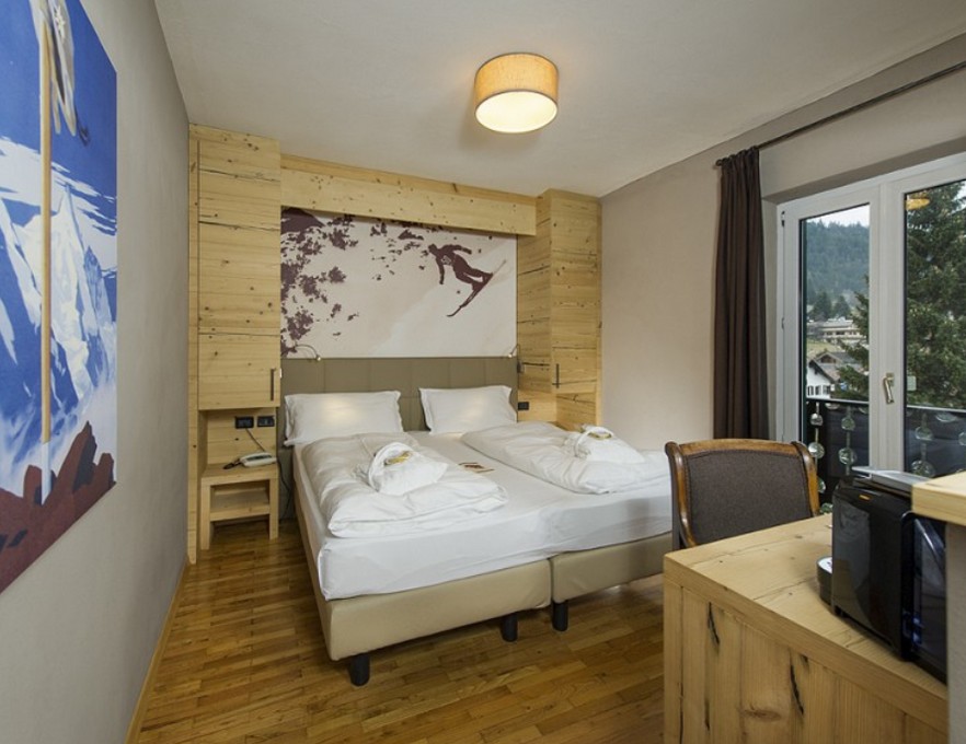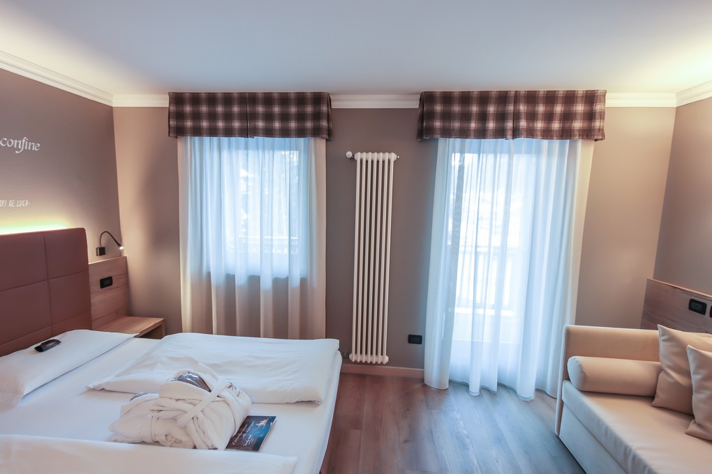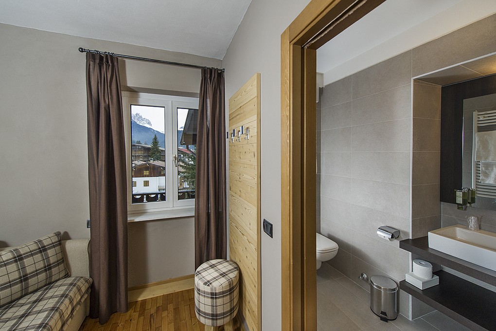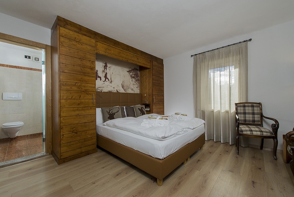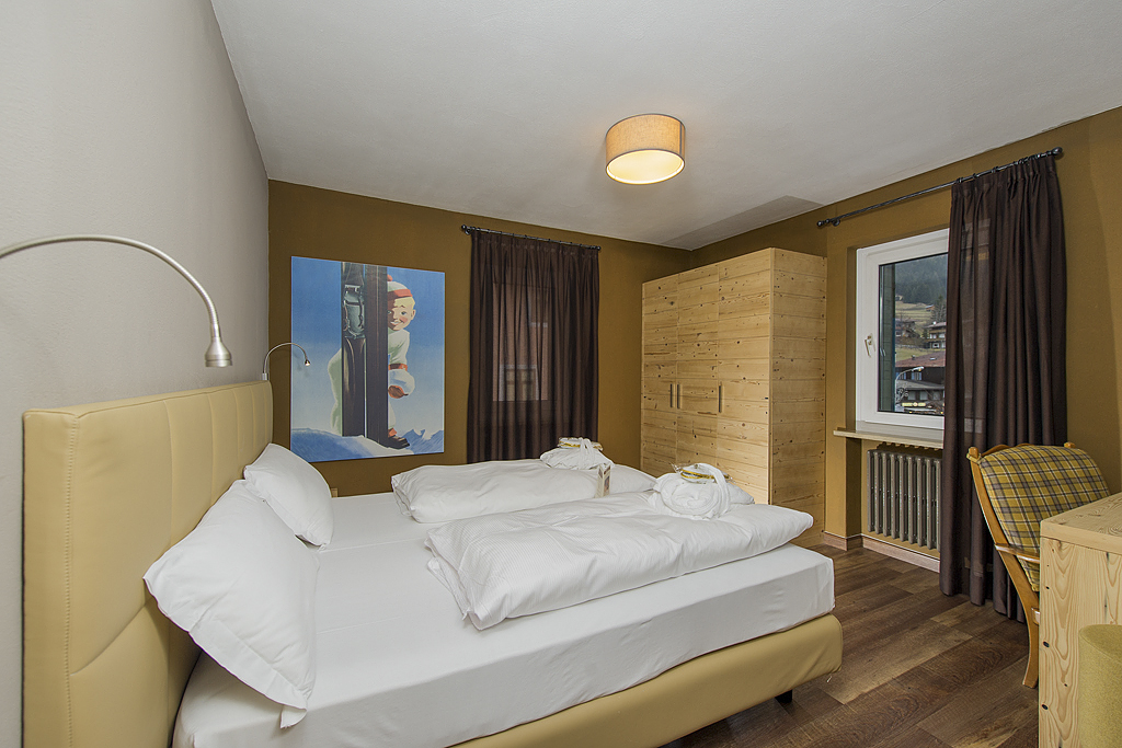Modernity and comfort characterize the Villa Mitzi rooms. They have a bathroom with shower. Ideal for 2 adults + 1 child. Located in the Villa Mitzi building, on the mezzanine floor, internally connected to the historic Gran Baita building. In some there is the possibility of adding a 4th bed. It does not have a balcony.