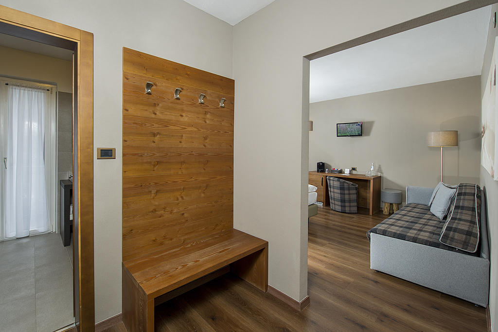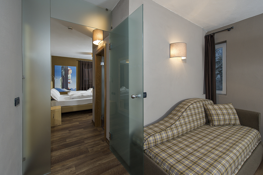 The Junior Gran Baita are ideal for hosting families with one or two children. The rooms consist of a double room with a separate sleeping area dedicated to children and a bathroom ideal for 2 adults and 1-2 children. Equipped with bathroom with shower, TV, minibar and wifi. Rooms without balcony.