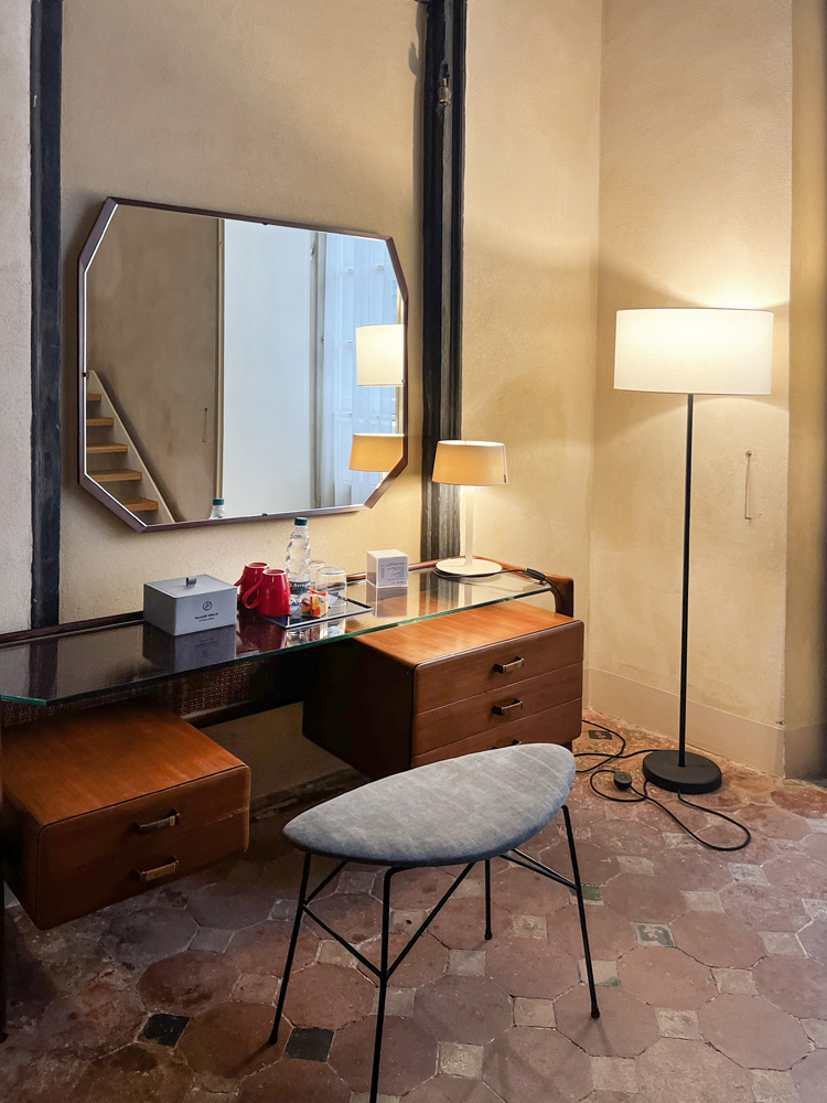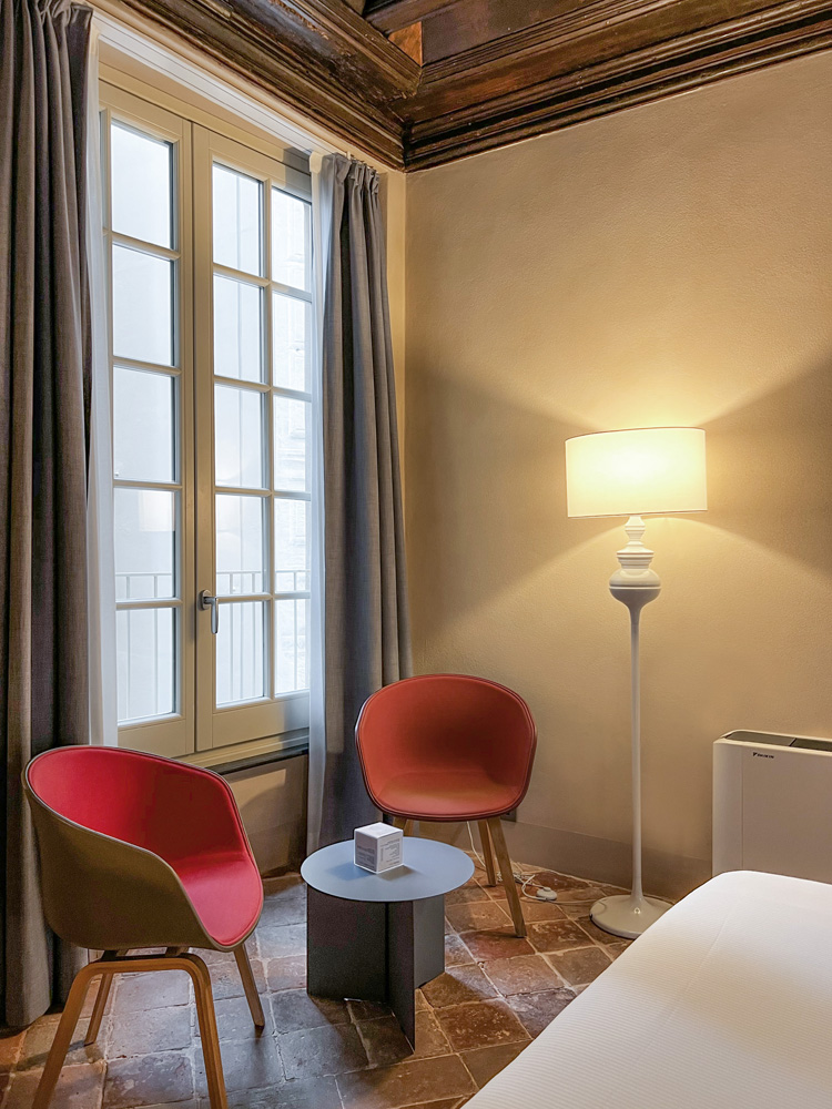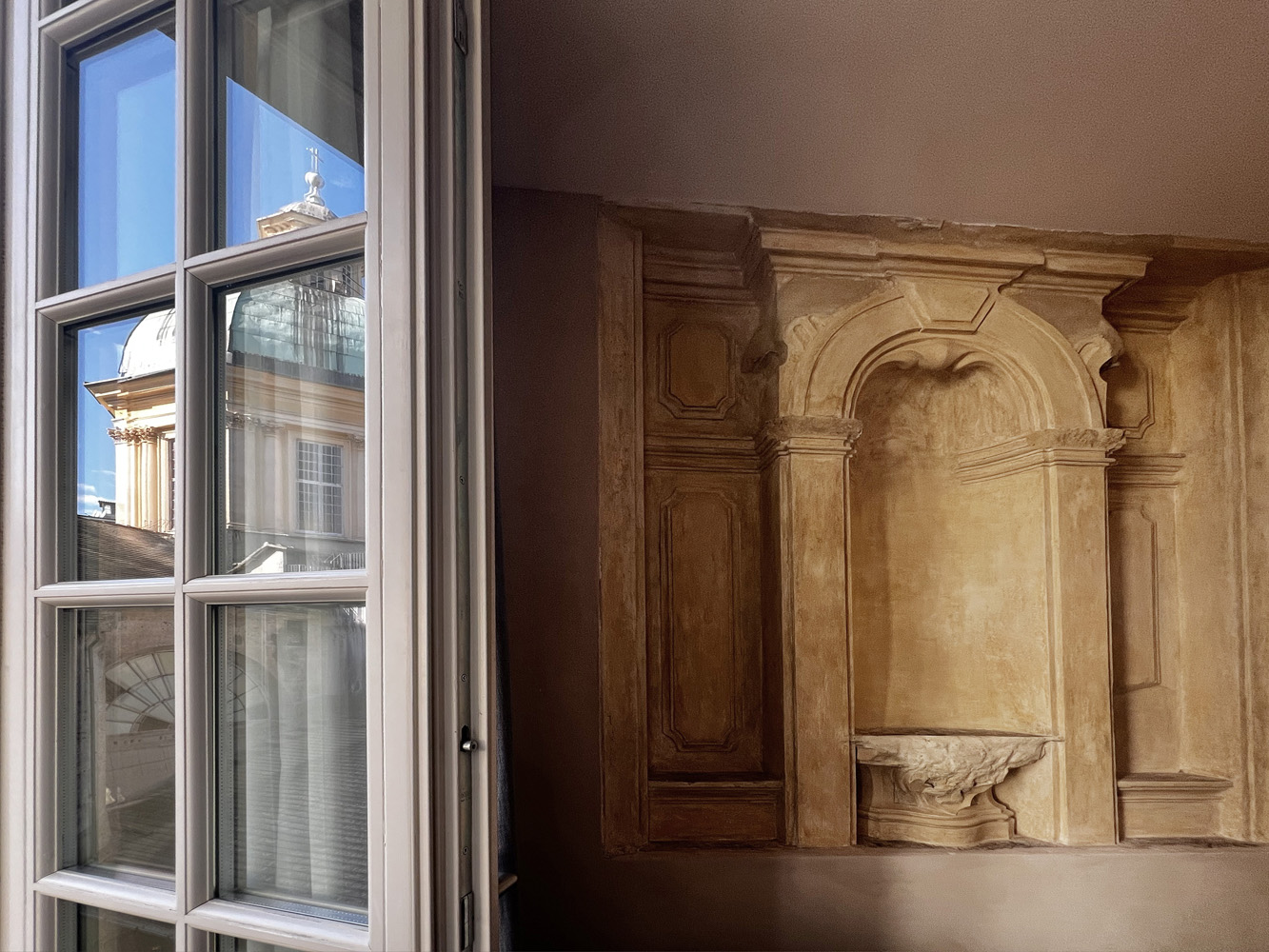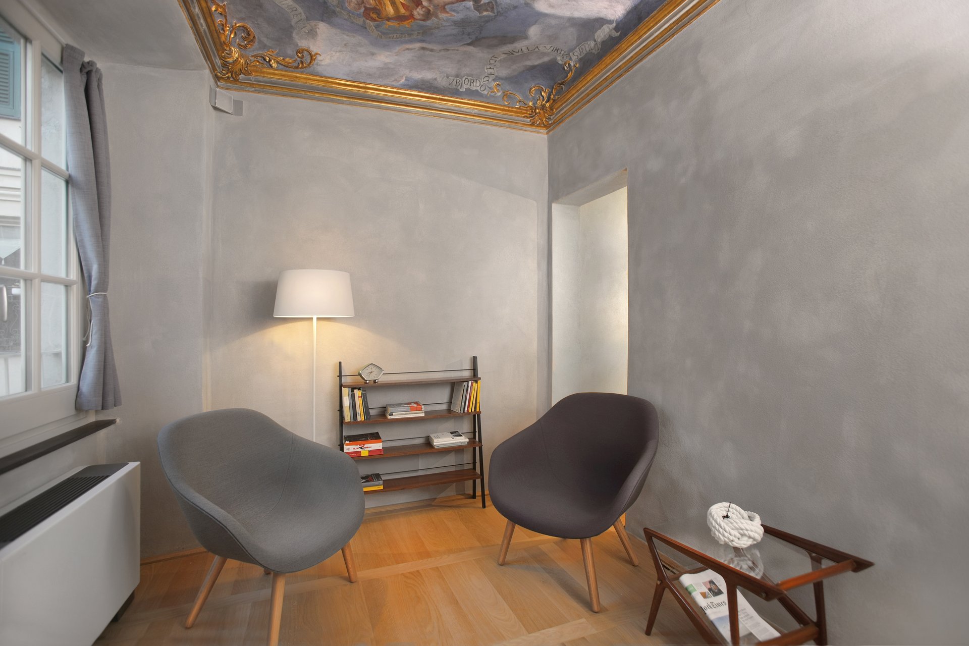 Gli arredi di design e vintage si abbinano con sobrietà ed eleganza alla storia del Palazzo offrendo un ambiente accogliente e ricercato.