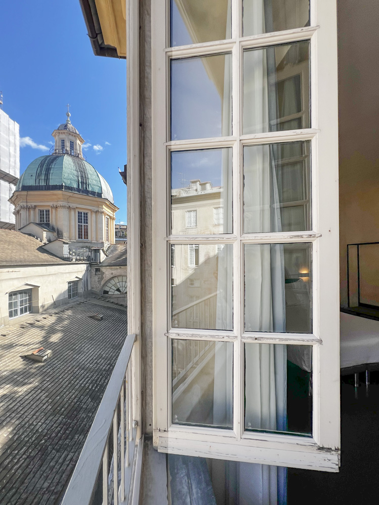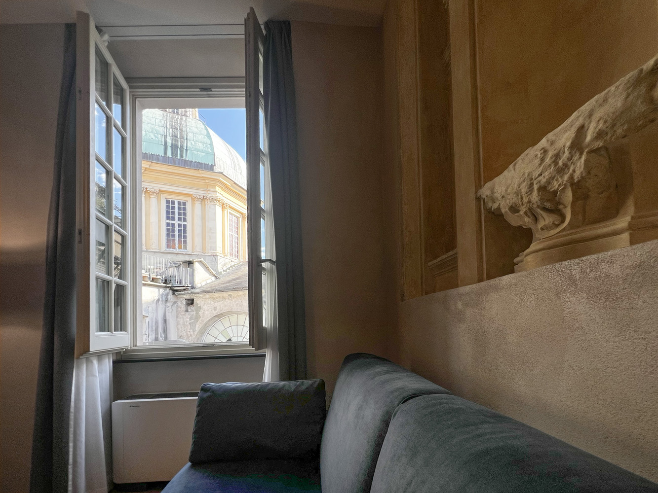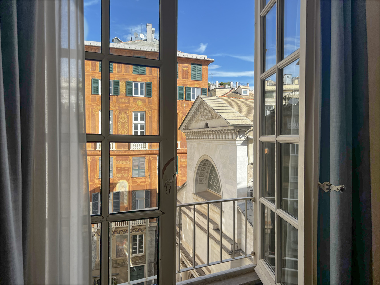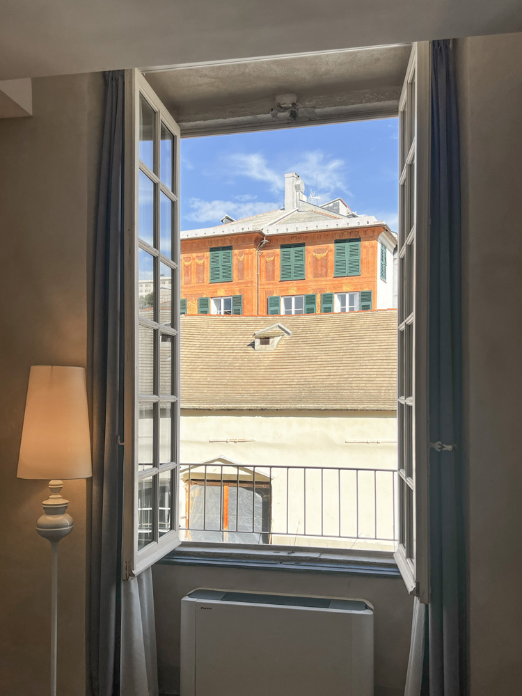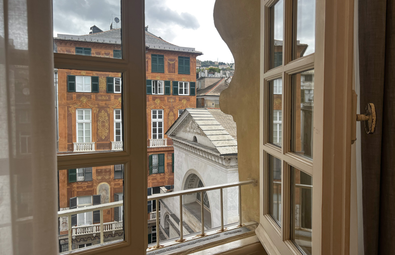 La camera Deluxe Luxury ha vista laterale con caratteristici scorci genovesi e offre particolare silenzio.