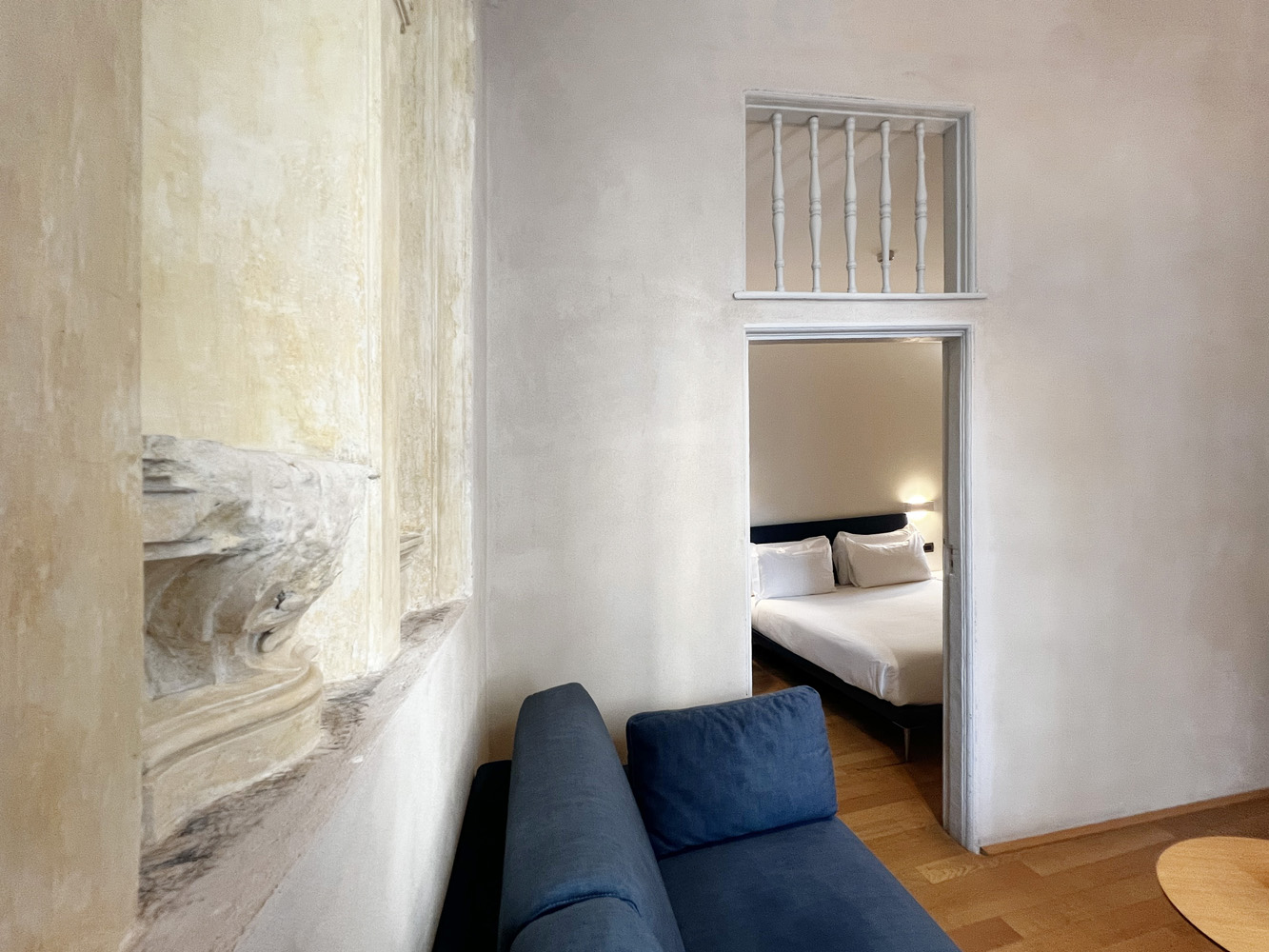 Dettagli originali del '500 presenti nella piccola area soggiorno caratterizzano la camera rendendola unica nel suo genere e particolarmente comoda per 2 persone.