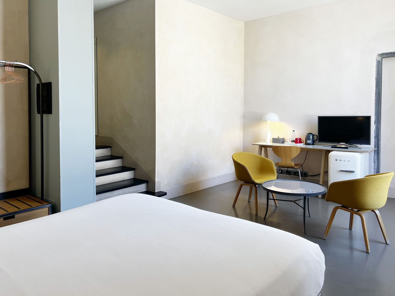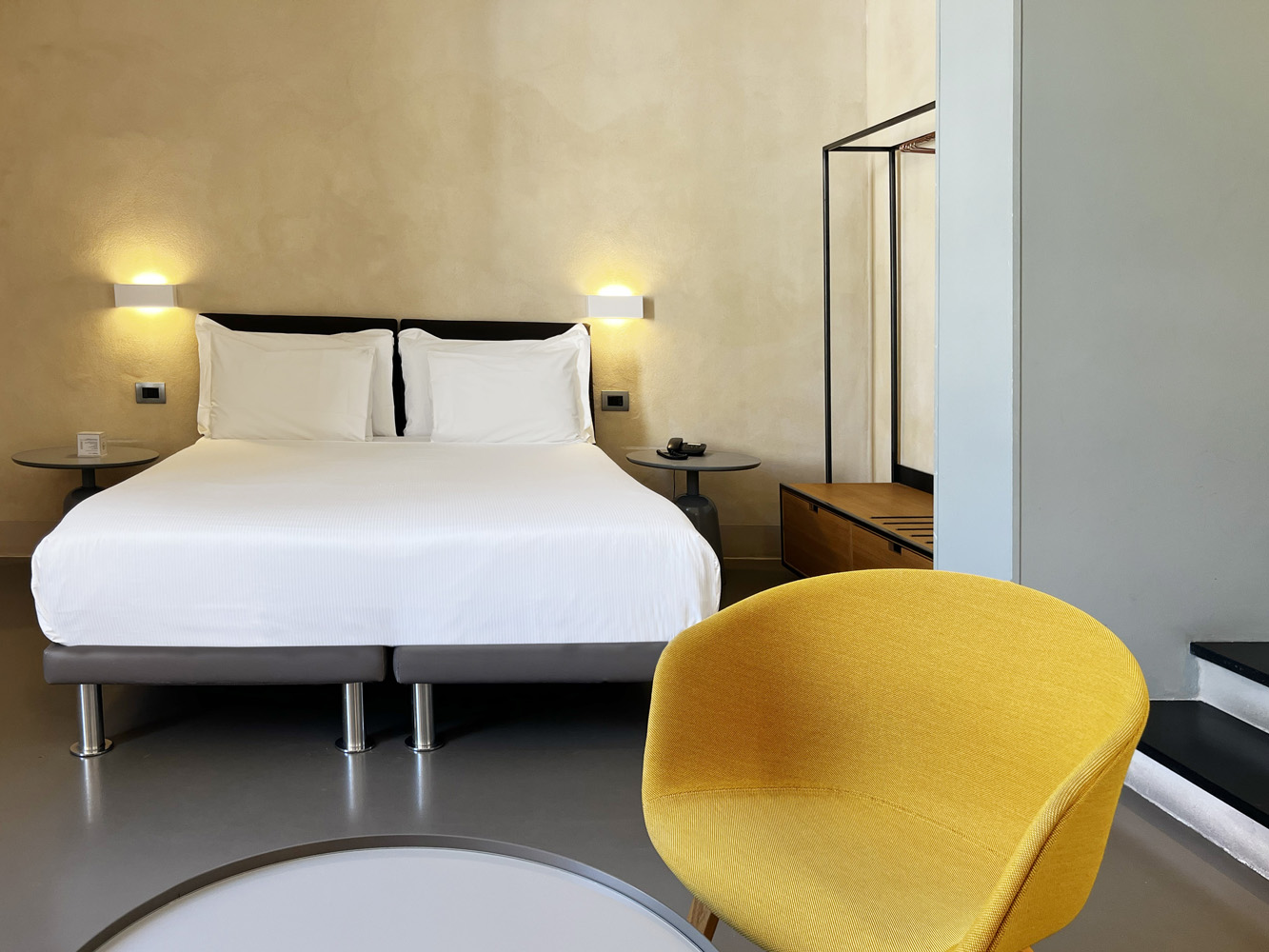 Camere accoglienti e dotate di tutti i comfort con arredi e dettagli di design con uno stile essenziale. A disposizione uno speaker bluetooth per ascoltare la musica, smart TV e frigobar Smeg per ogni esigenza.