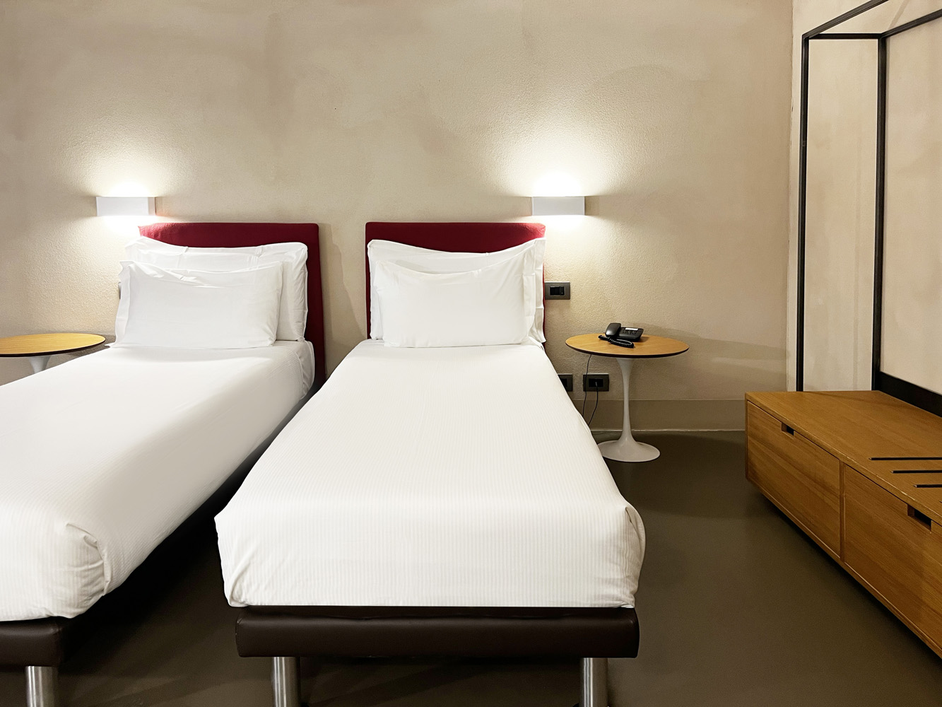 Ogni camera è differente per colori, vista, arredi e disposizione seguendo uno stile sobrio ed elegante, dalla scrivania, al letto alle poltrone di design. Camere moderne e funzionali, materiali innovativi e forme lineari.
