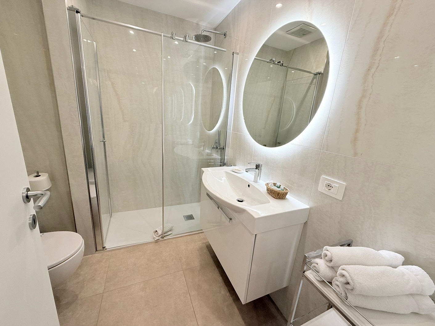 Appartamento (ca. 50m²) dotato di due camere ognuna con 2 letti singoli oppure 1 matrimoniale, soggiorno/salotto con divano letto per 2 persone, angolo cottura con tutta l’attrezzatura necessaria, lavastoviglie, bollitore e forno microonde, 2 Tv sat HD, bagno con doccia/wc. Balcone o spazio esterno al piano terra arredato con tavolo e sedie.