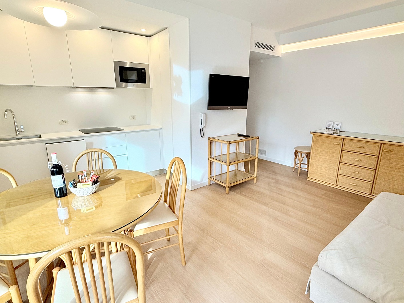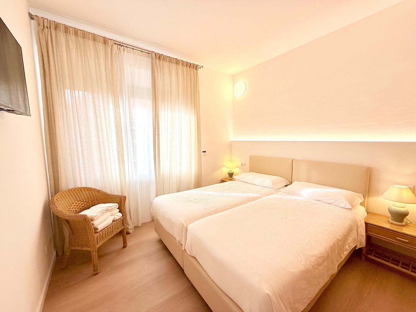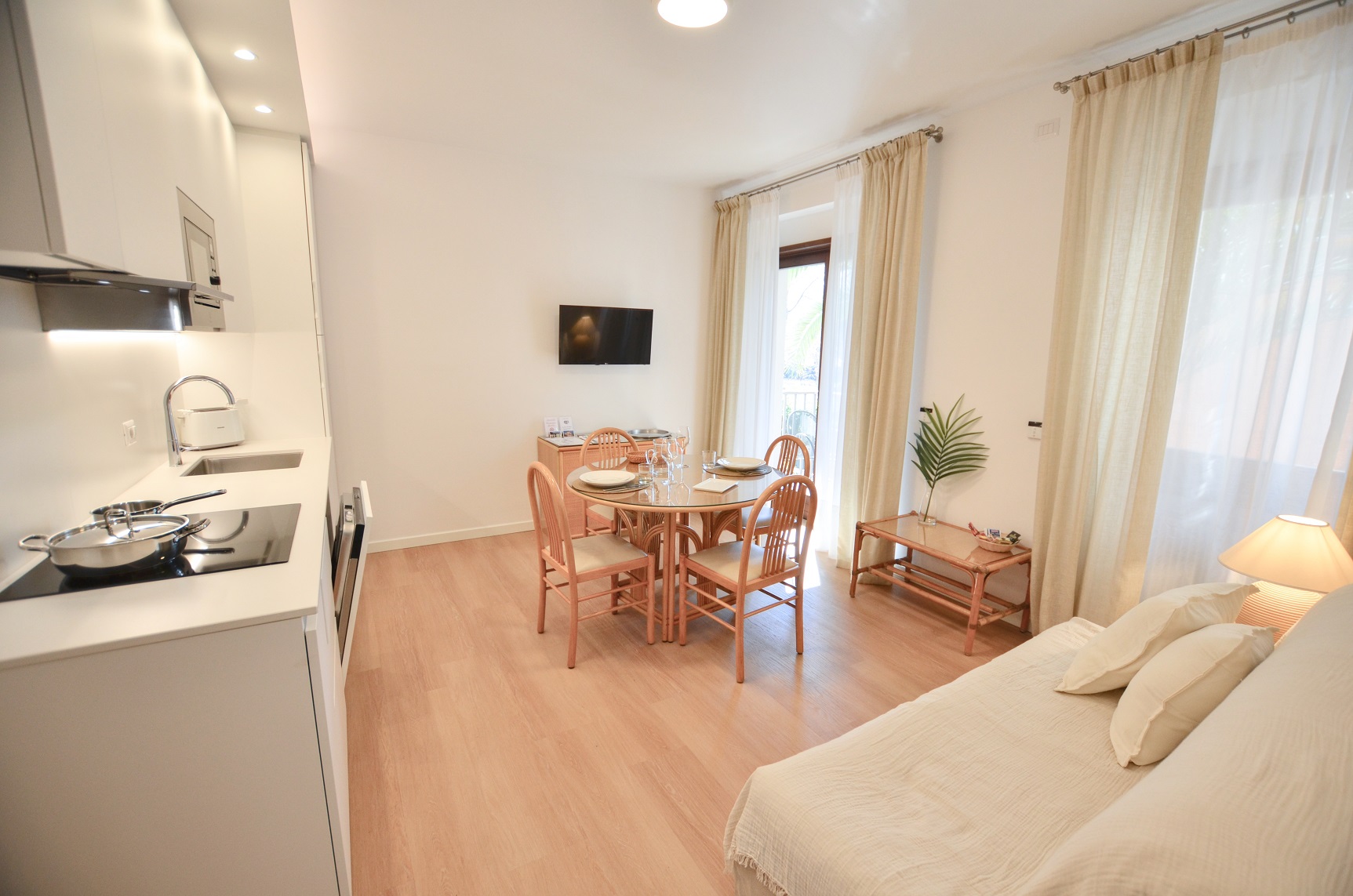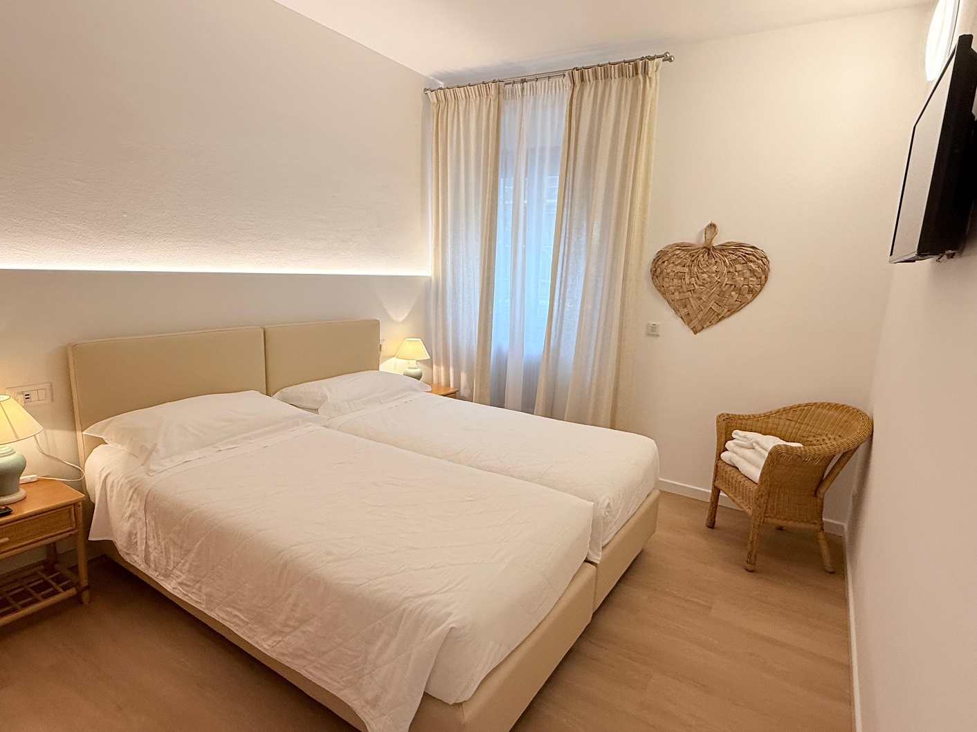 Appartamento (ca. 40m²) dotato di una camera con 2 letti singoli oppure 1 matrimoniale, soggiorno/salotto con divano letto per 2 persone, angolo cottura con tutta l’attrezzatura necessaria, lavastoviglie, bollitore e forno microonde, Tv sat HD, bagno con doccia/wc, senza balcone.