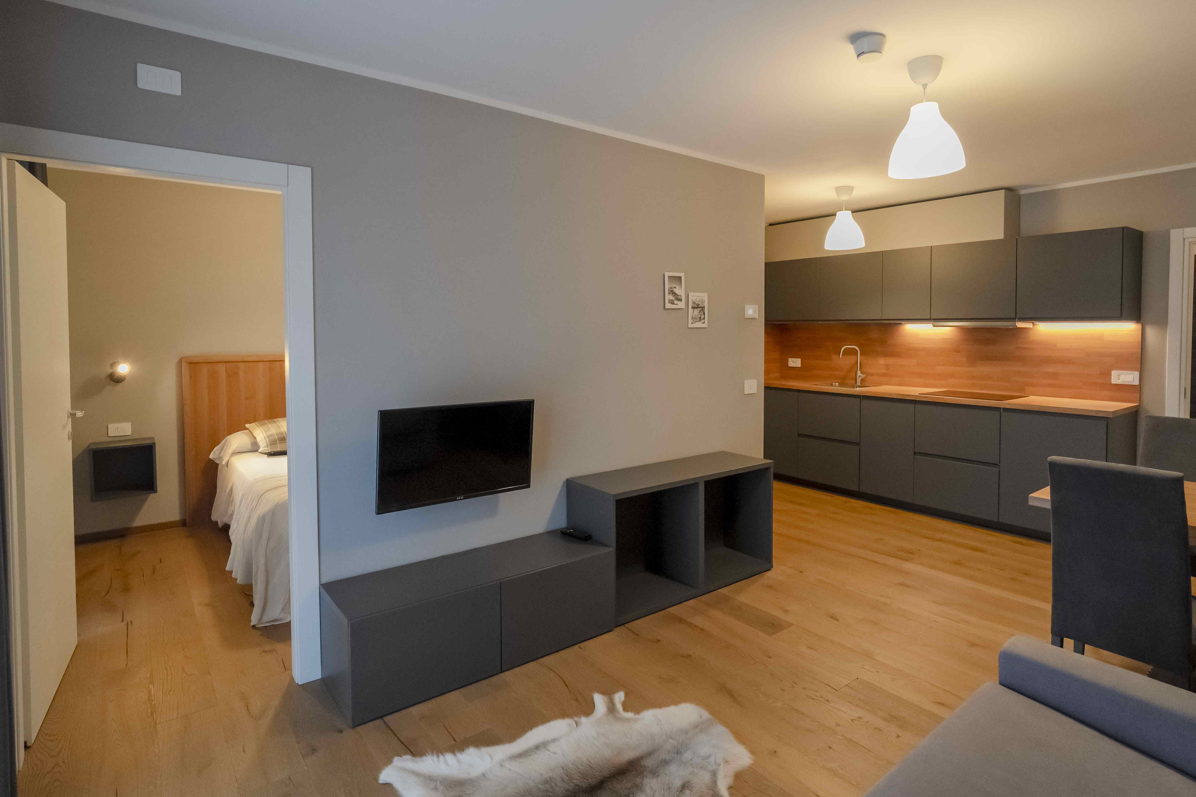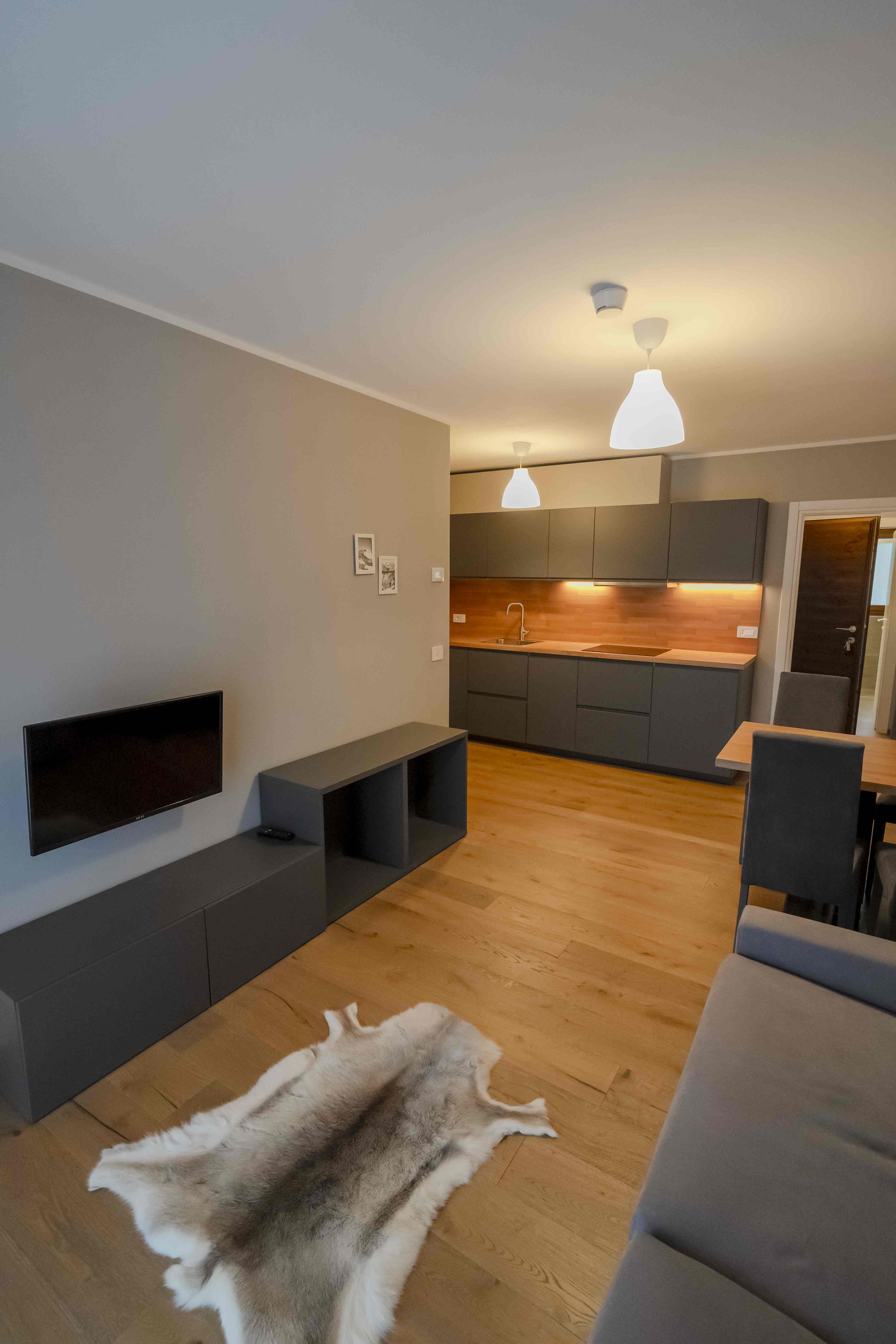 The Standard one-bedroom apartment. consists of a bedroom with a French bed, bathroom with shower cabin and bidet, living area with sofa bed, mini bar, flat-screen TV with satellite channels and balcony.