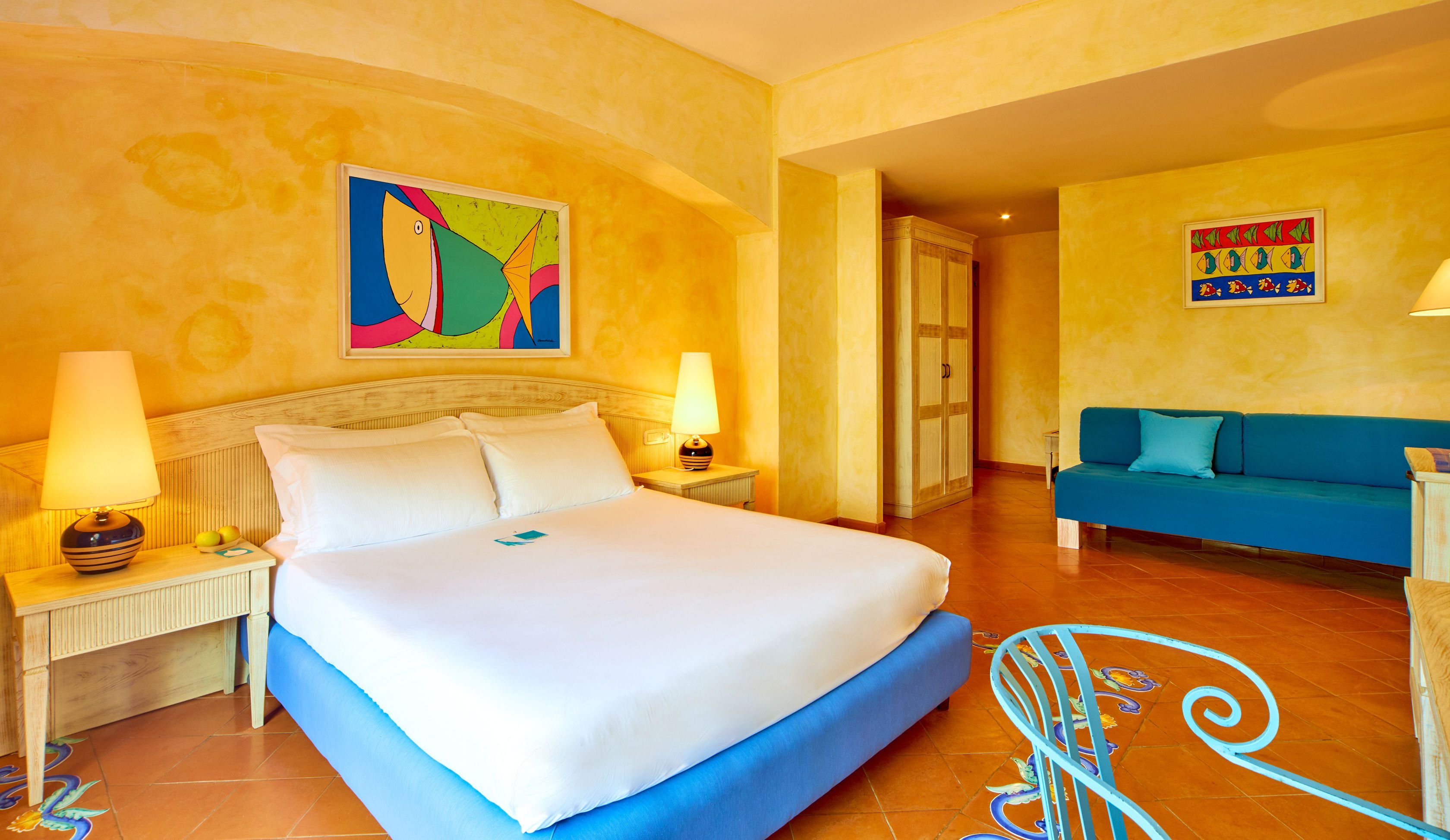 Con un arredamento in stile mediterraneo, elegante e raffinato, queste stanze rispecchiamo fortemente