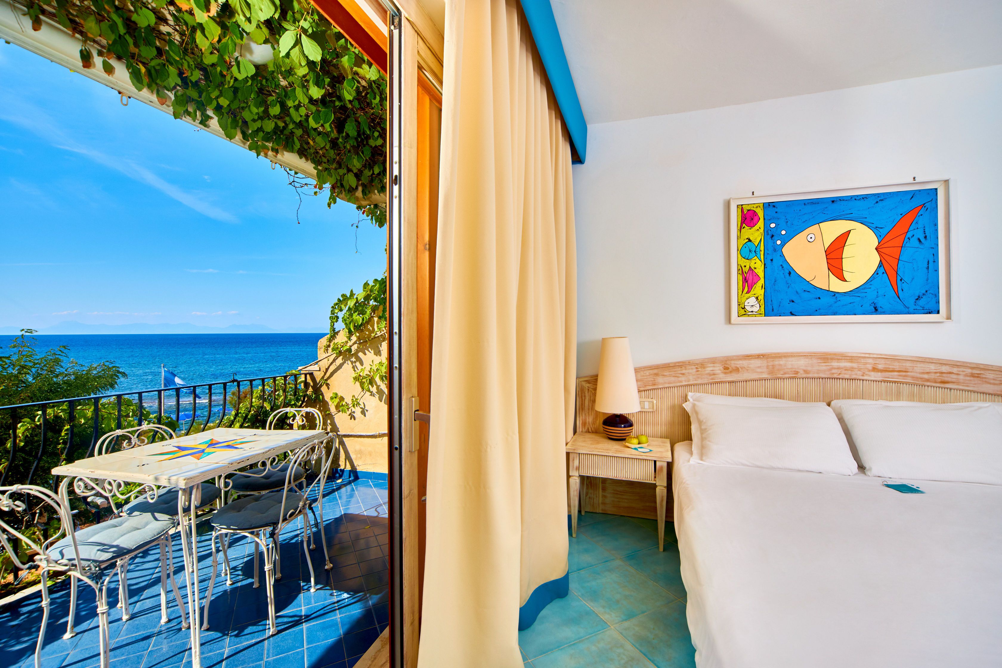 sposa alle opere degli artisti che hanno impreziosito le nostre Suite. Il terrazzo vista mare e la mini
