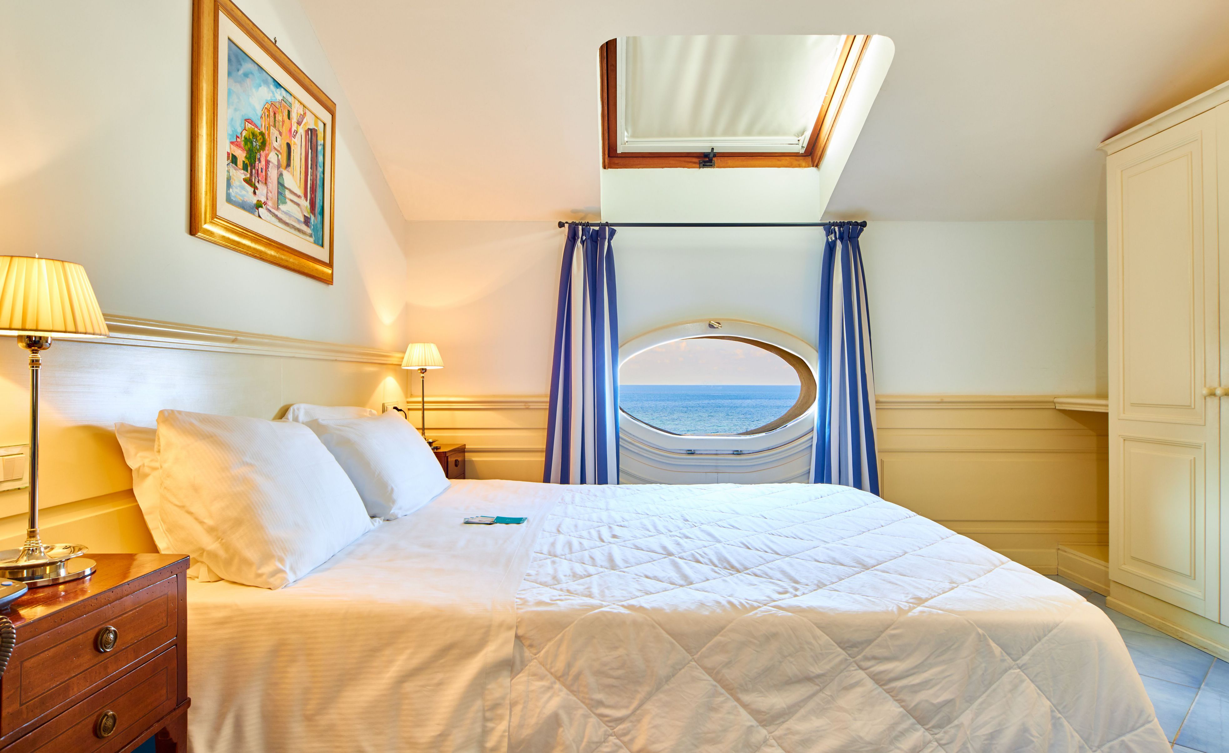 Ogni stanza è dotata di un caratteristico oblò con vista mare.