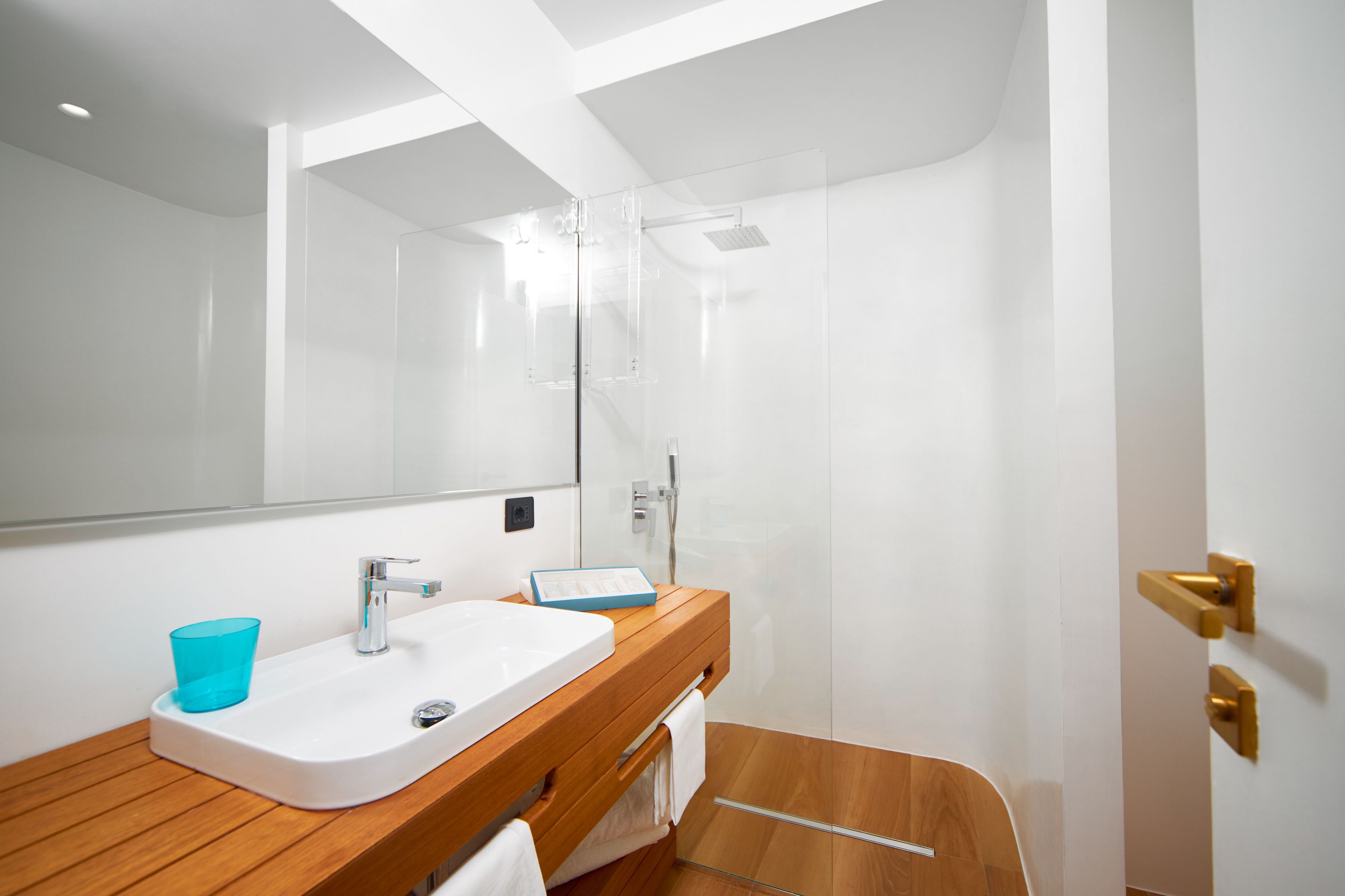 Inoltre, in stanza troverà: frigo bar, TV lcd, telefono, cassaforte, corner make-up, angolo