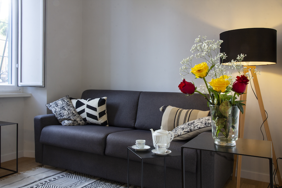 La zona notte è composta da camera da letto doppia, cabina armadio e bagno. La zona giorno è composta da un soggiorno con divano-letto matrimoniale, angolo cucina attrezzato, lavatrice e lavastoviglie.