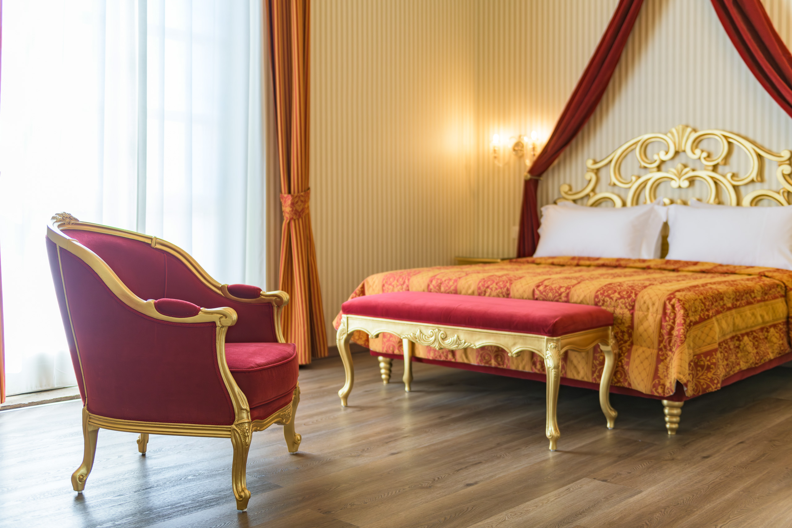 Camera situata nella villa padronale dell’Hotel Antico Monastero, composta da due ambienti disposti su due livelli collegati da una scala a chiocciola. Al piano superiore si trova una zona relax con divano, mentre al piano principale l’ambiente è caratterizzato da un elegante letto matrimoniale con baldacchino e testiera dorata, soffitti decorati e lampadario a candelabro. La camera dispone di bagno con doccia, cassaforte, aria condizionata, riscaldamento, WI-FI, TV a schermo piatto e bollitore con assortimento di caffè e tisane.