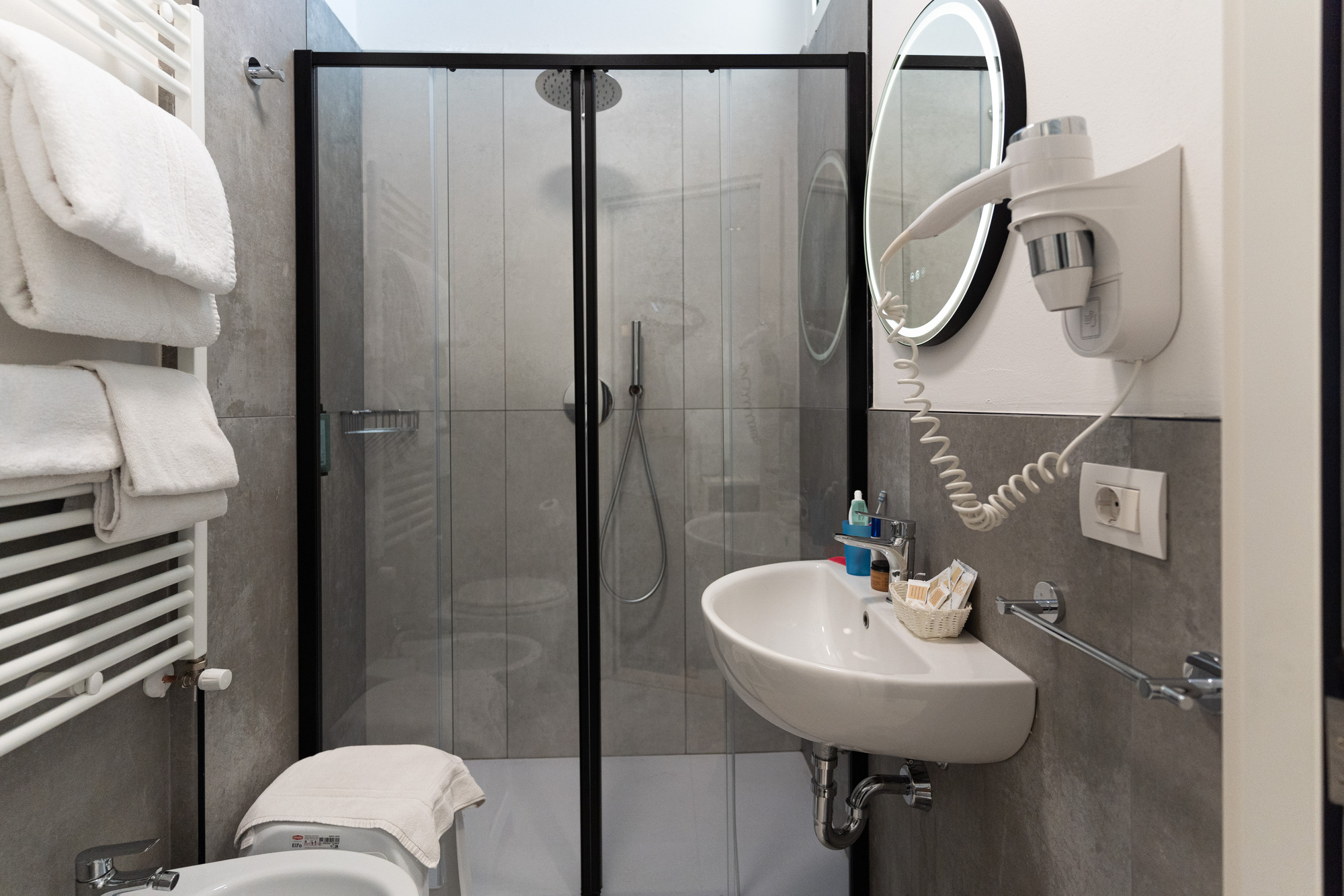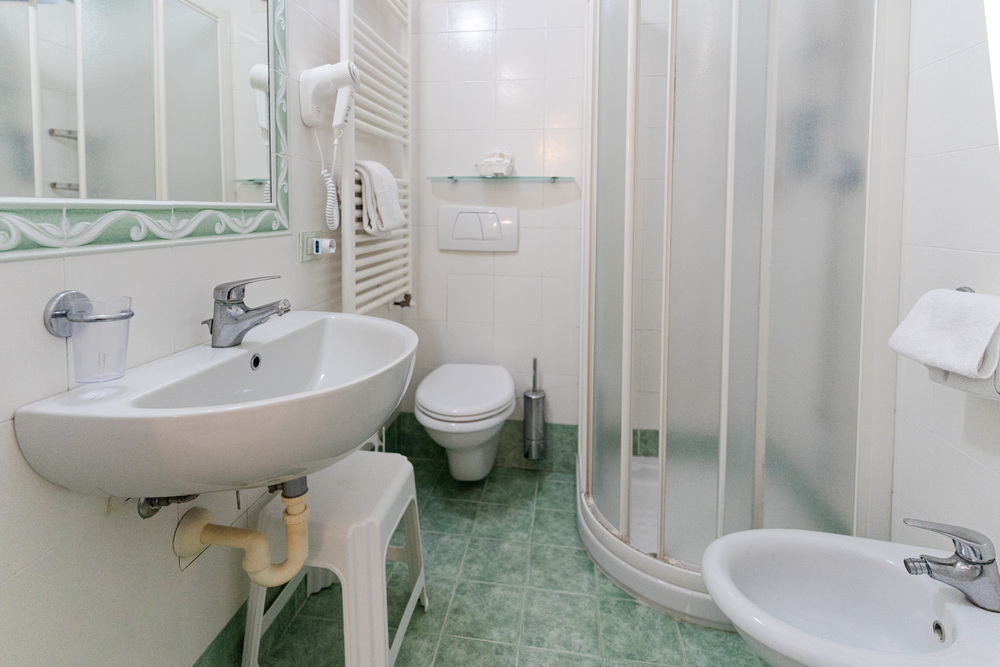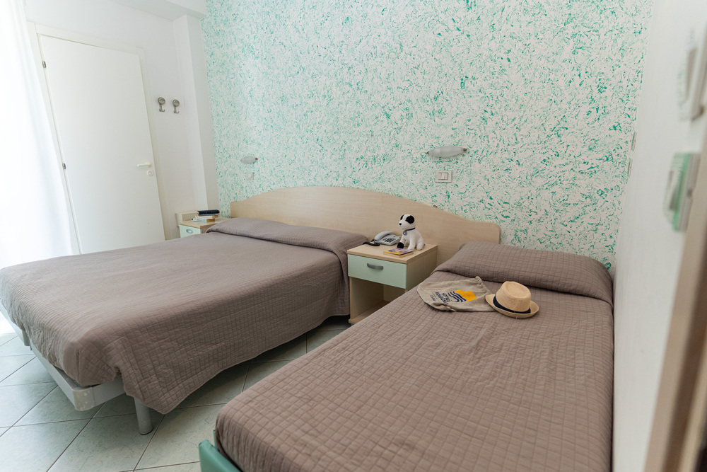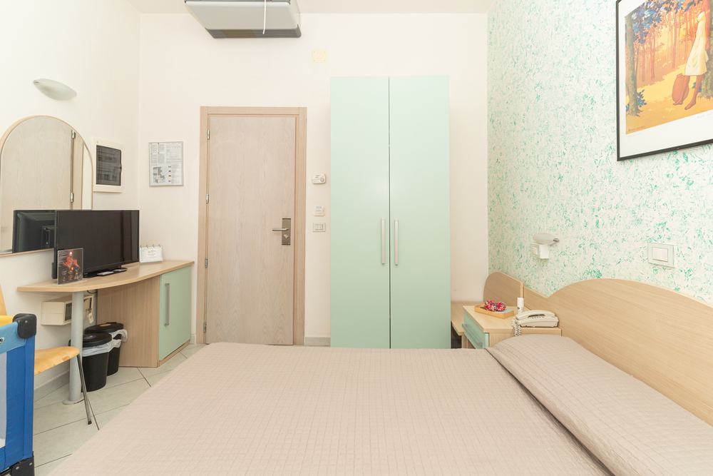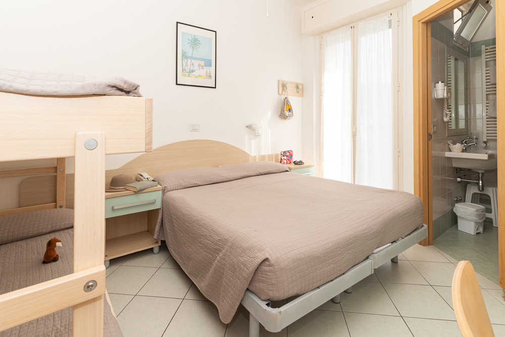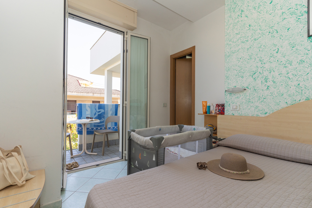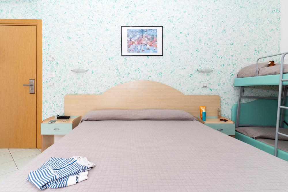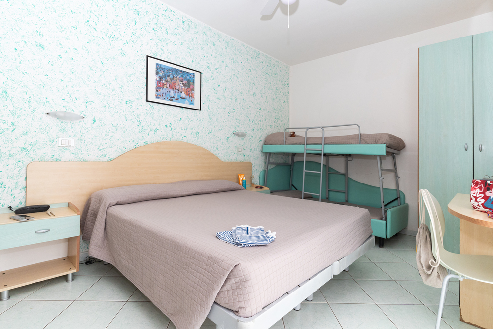 Ideal rooms for large families or for those looking for more comfortable solutions. Our quadruple rooms have a double bed, a bunk bed and possibly a cot or an additional single bed. They are equipped with all comforts such as air conditioning/heating, fridge, TV and private bathroom. Large furnished balconies on the third floor overlooking the walking street or the pool, complete your relaxation.