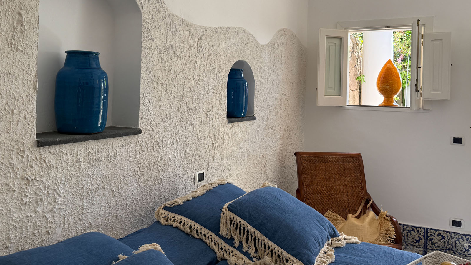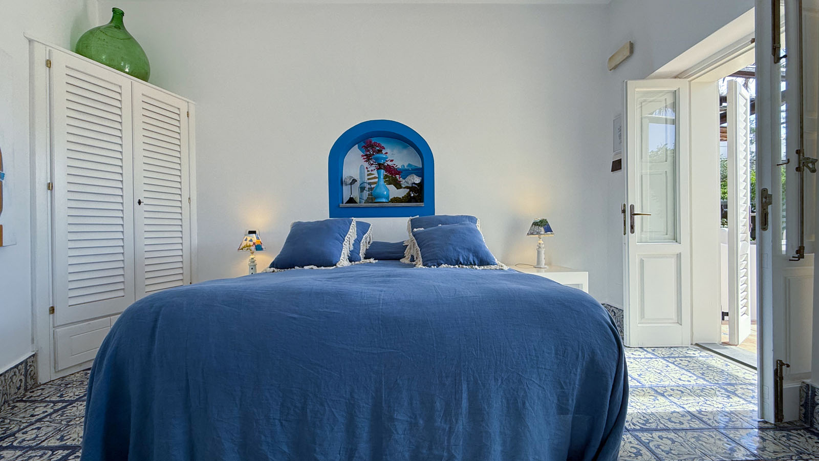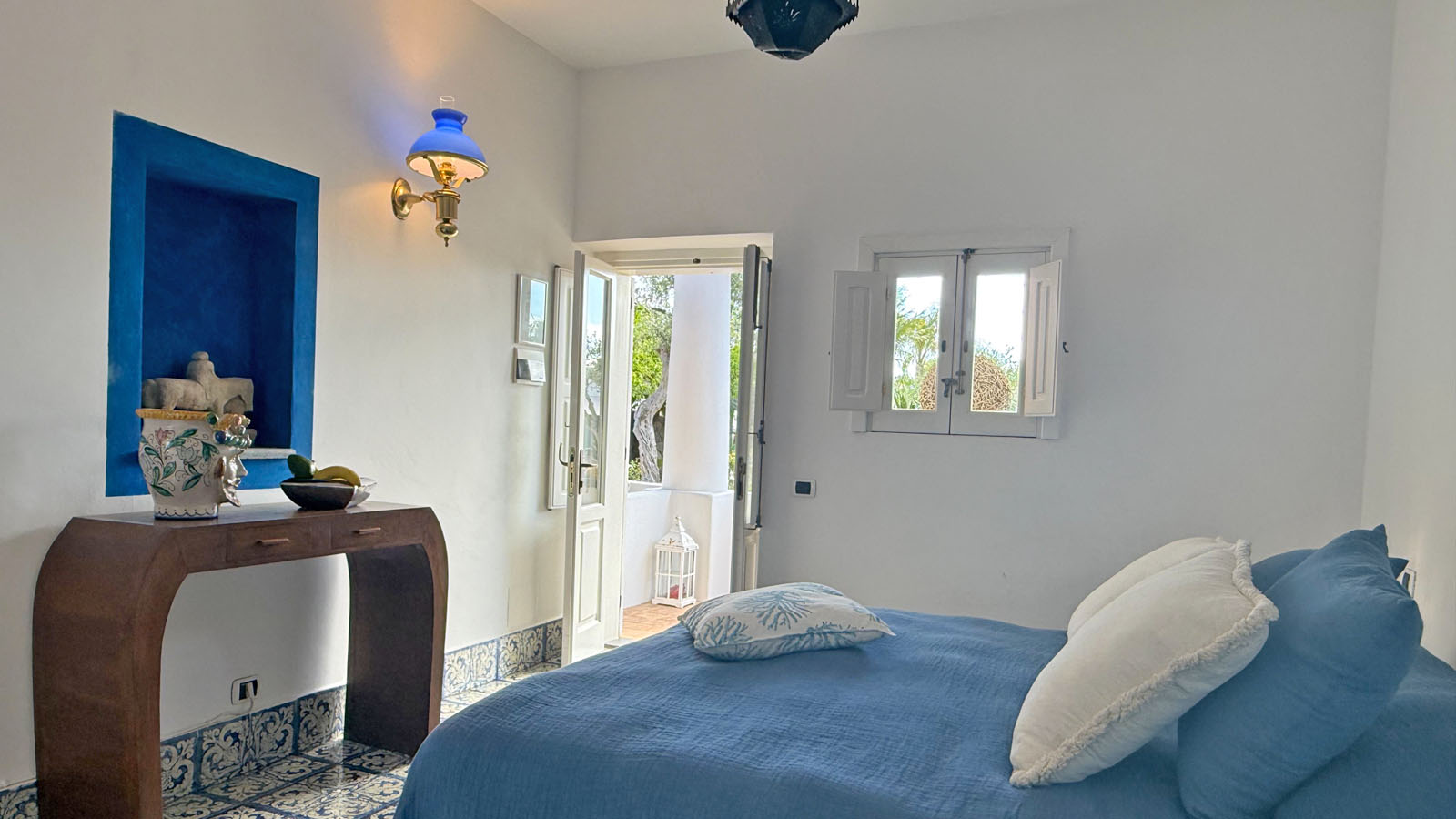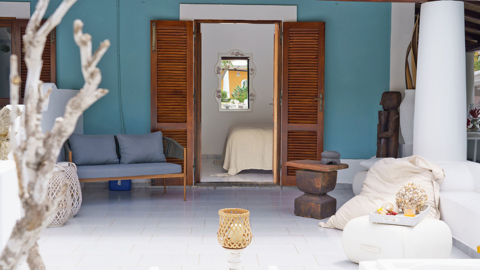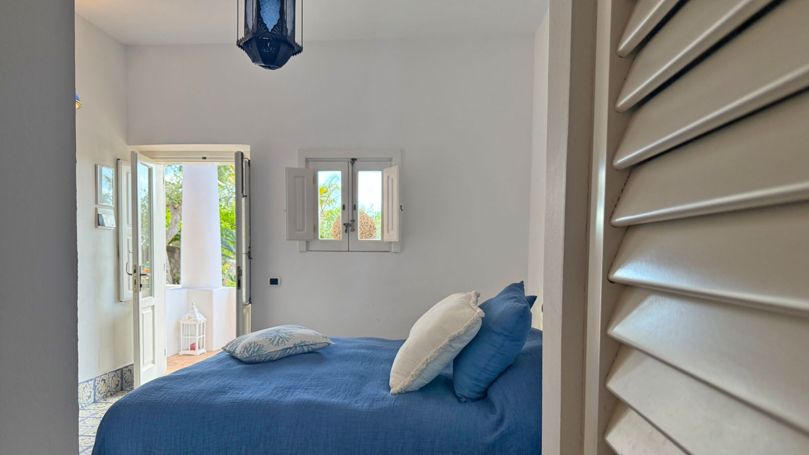 La camera dispone di camera da letto con letto matrimoniale, bagno privato in camera, ingresso indipendente, patio attrezzato, aria condizionata, frigo, TV, WiFi, giardino terrazzo comune con le alte camere della villa con un incantevole panorama sugli isolotti Dattilo, Lisca Bianca, Basiluzzo e sul vulcano Stromboli.