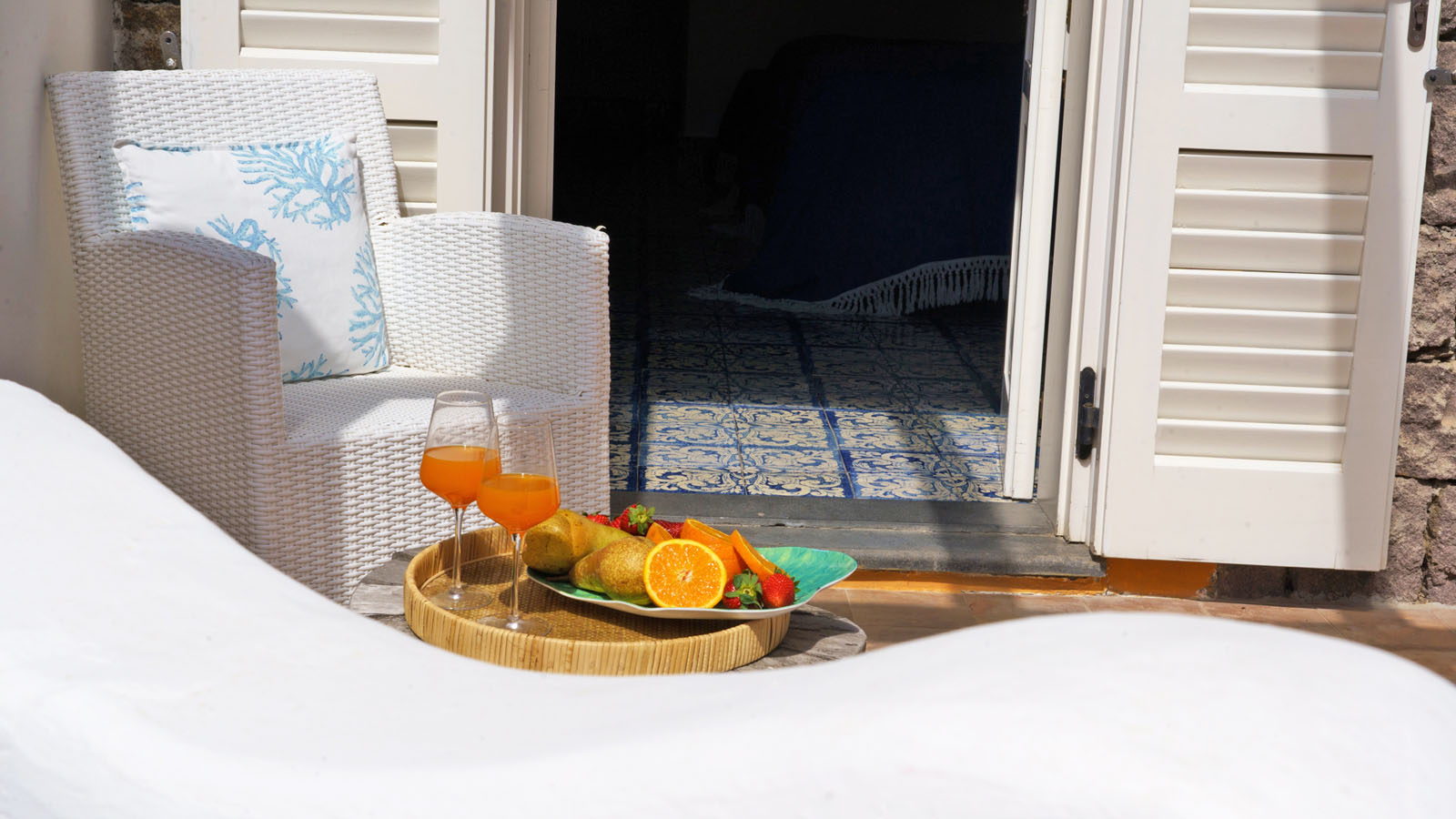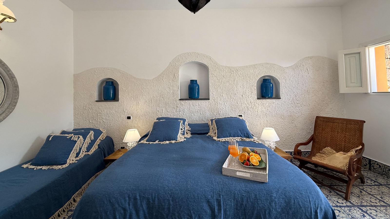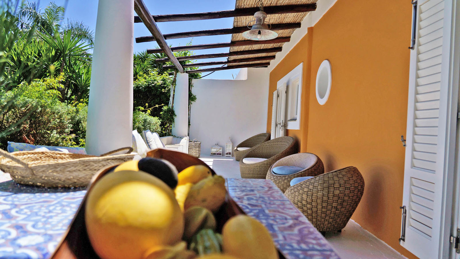 Le camere hanno un ingresso indipendente e sono strutturate in stile Dammuso, caratterizzate da un design personalizzato e dotate di ogni genere di comfort. Finemente arredate con lavorazione artigianale in legno e ceramica tipica siciliana si affacciano sullo splendido giardino e sulla piscina idromassaggio geotermica ed ognuna gode di un patio attrezzato, un luogo per godersi momenti di relax.Le camere