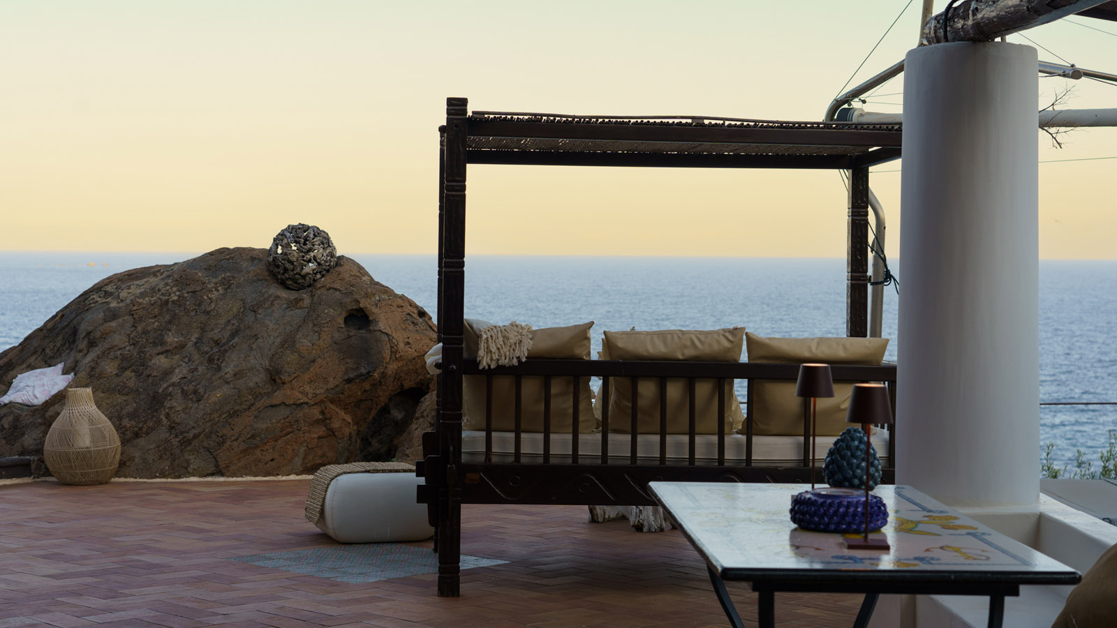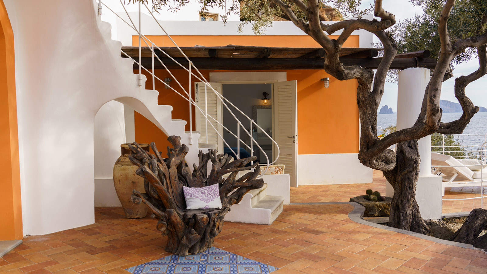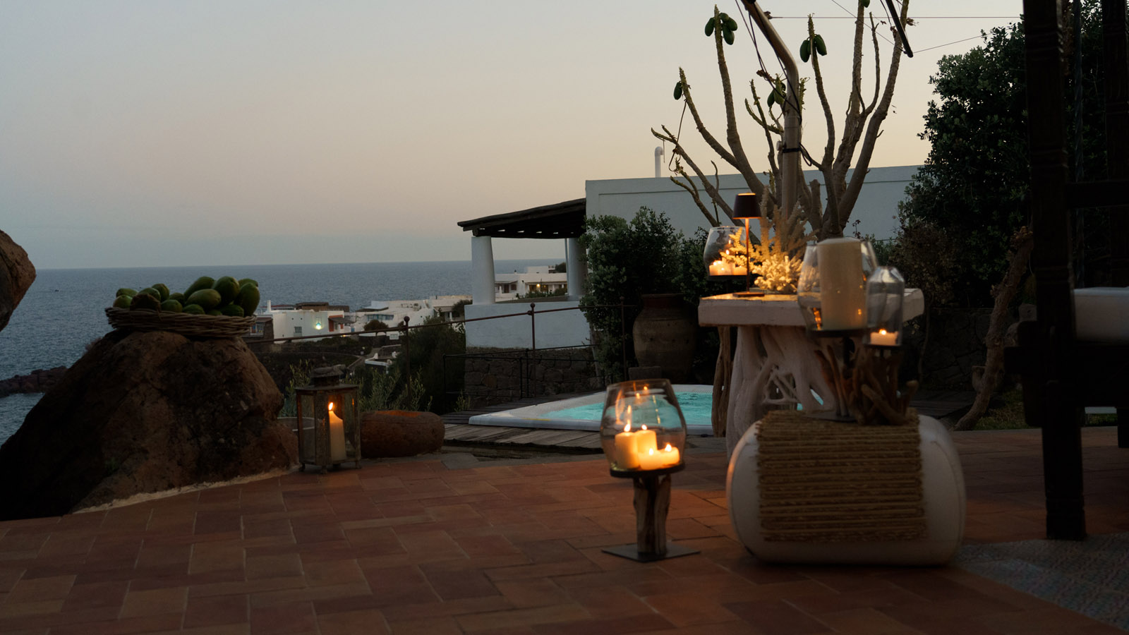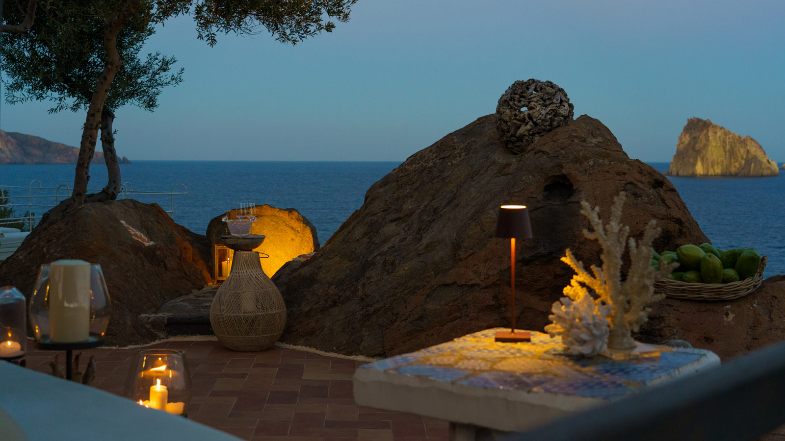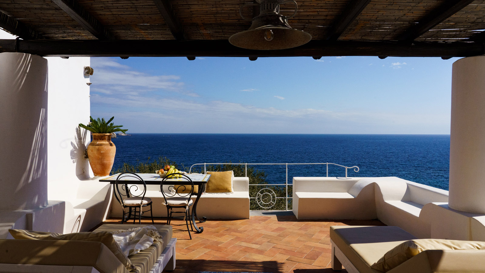 Villa Rocce Rosse è una prestigiosa residenza situata a picco sul mare, distante 10 minuti dal centro di Panarea. La villa è composta da 4 camere matrimoniali, ognuna con bagno ed ingresso indipendente, e gode di una vista mozzafiato sul mare, sugli isolotti di Dattilo, Basiluzzo e sul vulcano Stromboli.