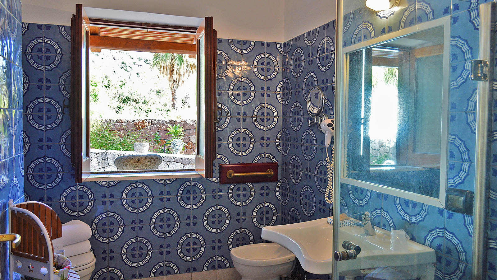 Attraverso una scala realizzata nella roccia è possibile raggiungere la scogliera sul mare. Le camere sono tutte dotate di patio attrezzato, aria condizionata, frigo, TV e WiFi.