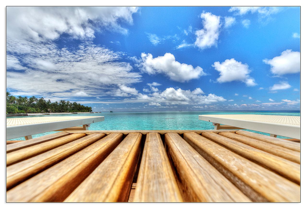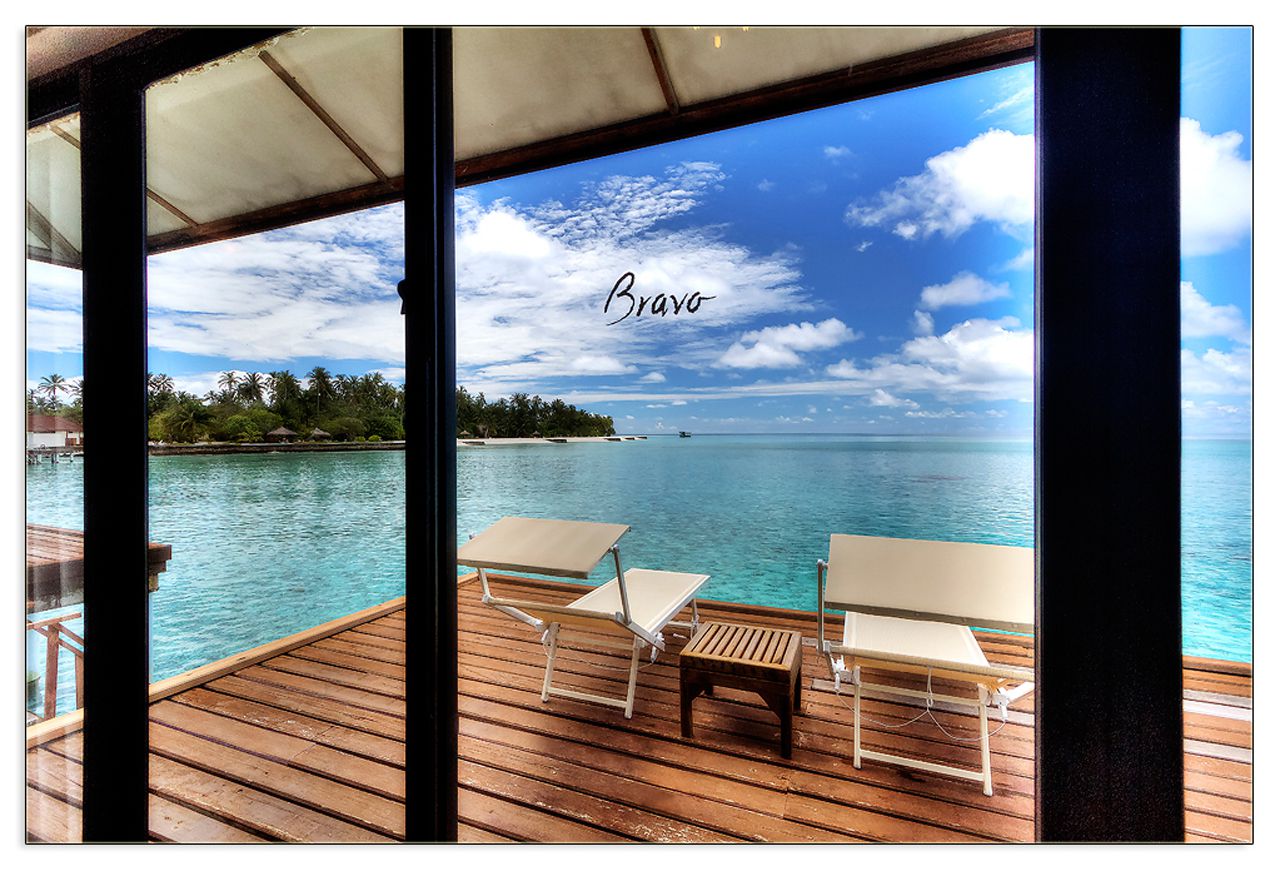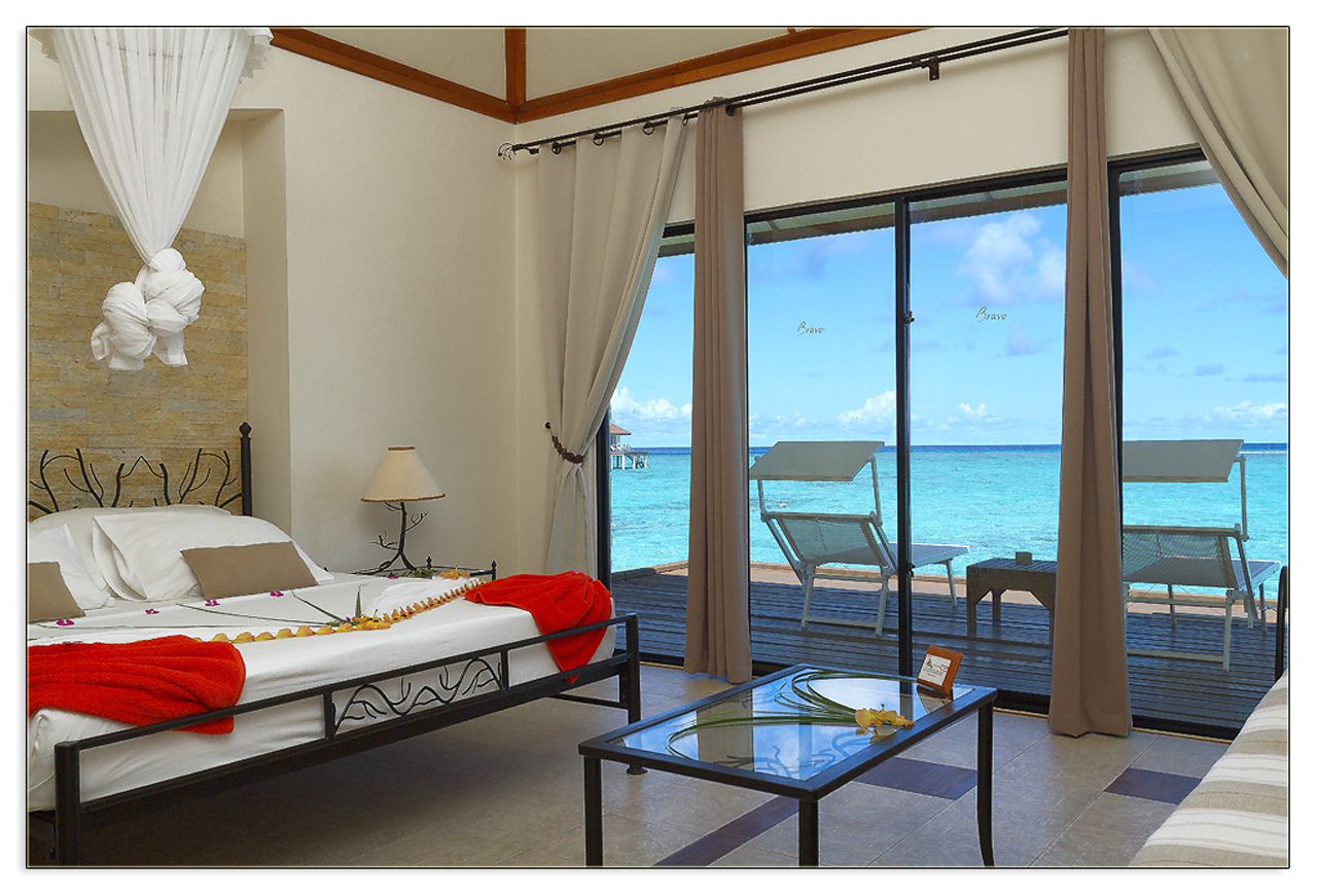 bianca spiaggia corallina di Alimathà. Dal proprio deck sarà possibile ammirare l’orizzonte attraverso i