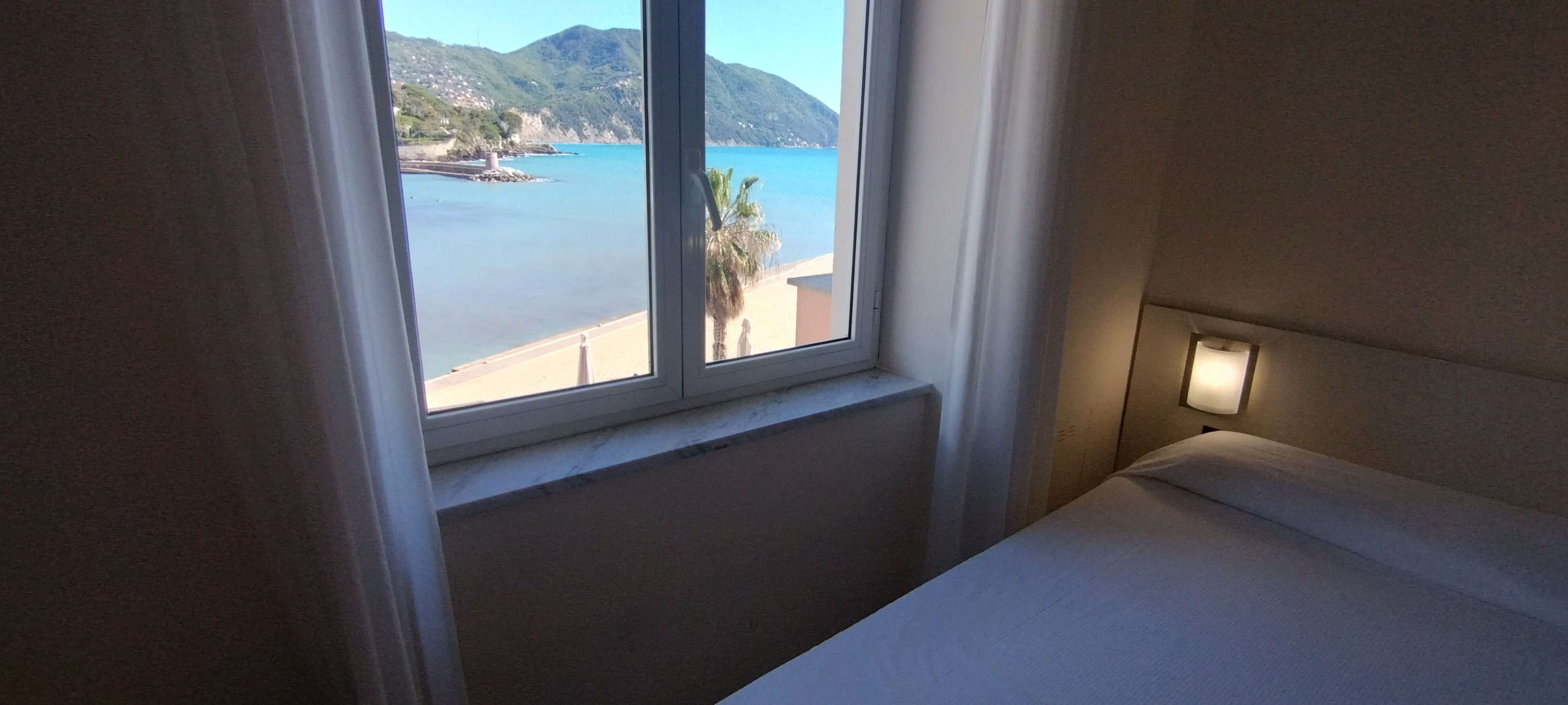 Affacciato sul Golfo Paradiso a 15 metri dal mare, con vista panoramica sul Monte di Portofino, le nostre camere hanno arredi semplici con vista mare, TV 32", Wi-Fi gratuito, aria condizionata, bagno privato in camera con asciugacapelli, e telefono.