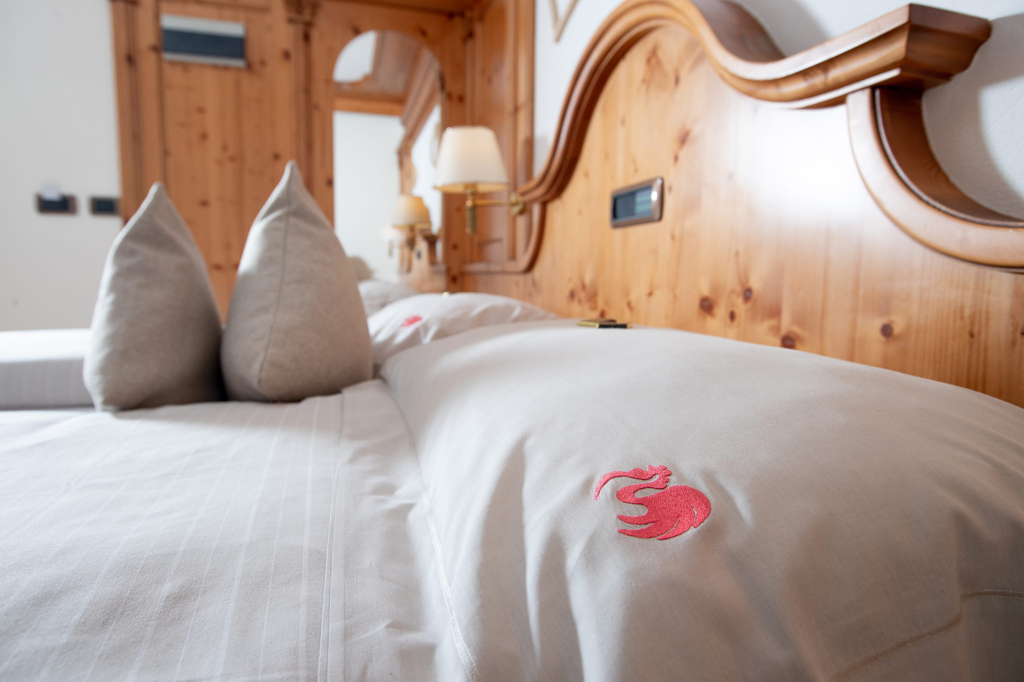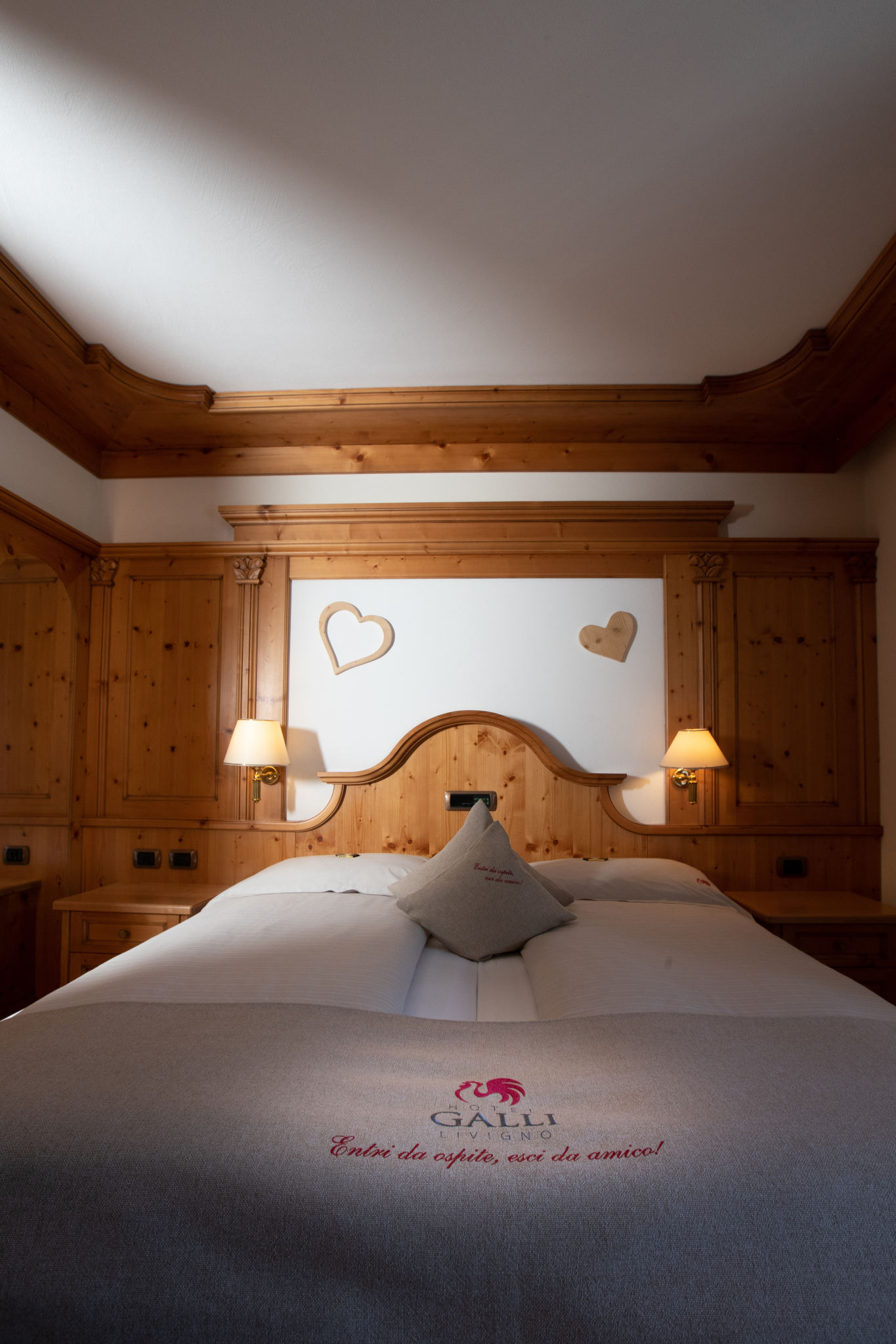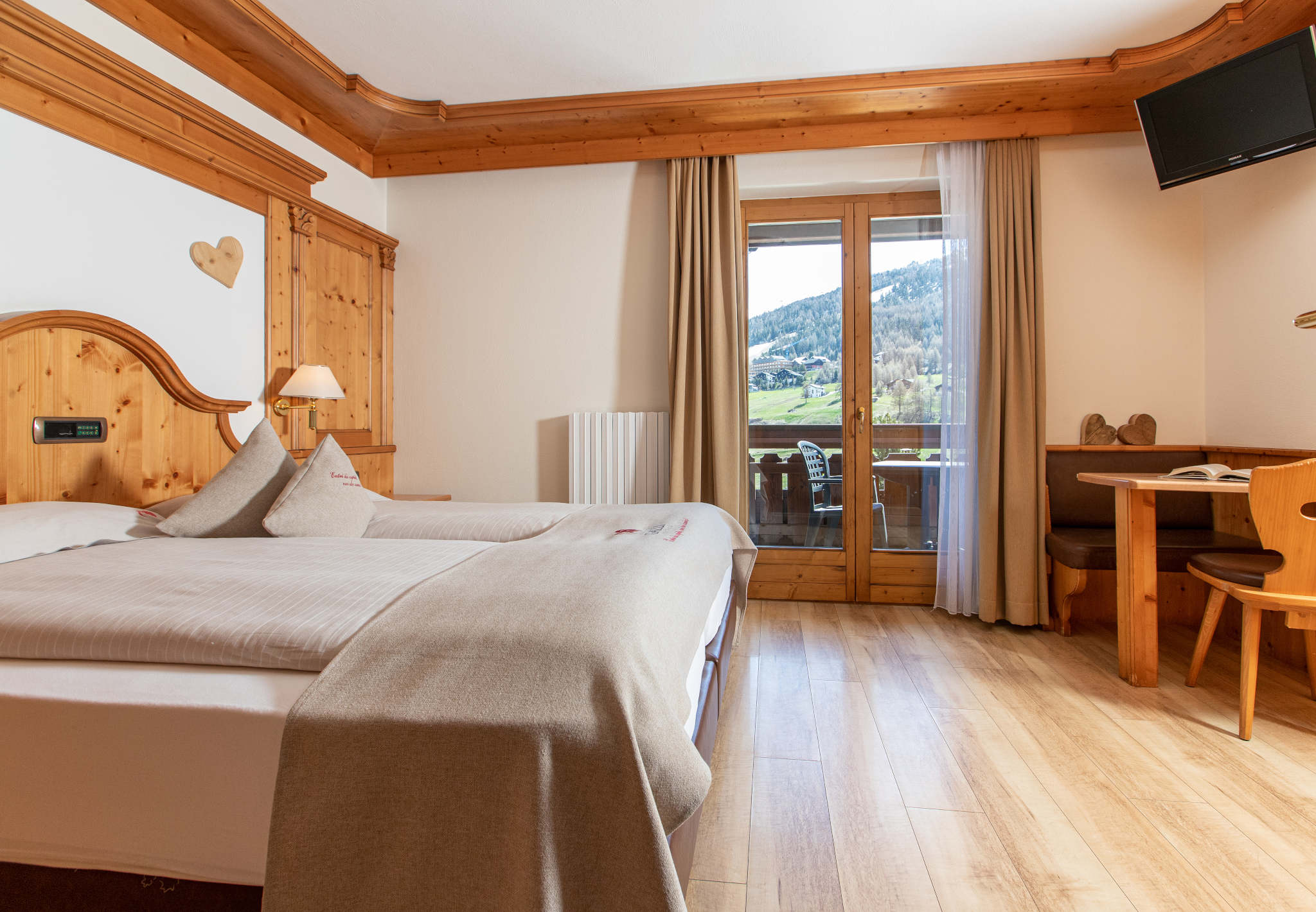 La camera doppia, con un letto matrimoniale (o due letti singoli), è la soluzione ideale per una vacanza in coppia. La stanza con vista su Livigno, è arredata in legno ed è dotata di ogni comfort: servizi privati con doccia, asciugacapelli e scaldasalviette, radio, Tv satellitare, telefono e cassaforte.