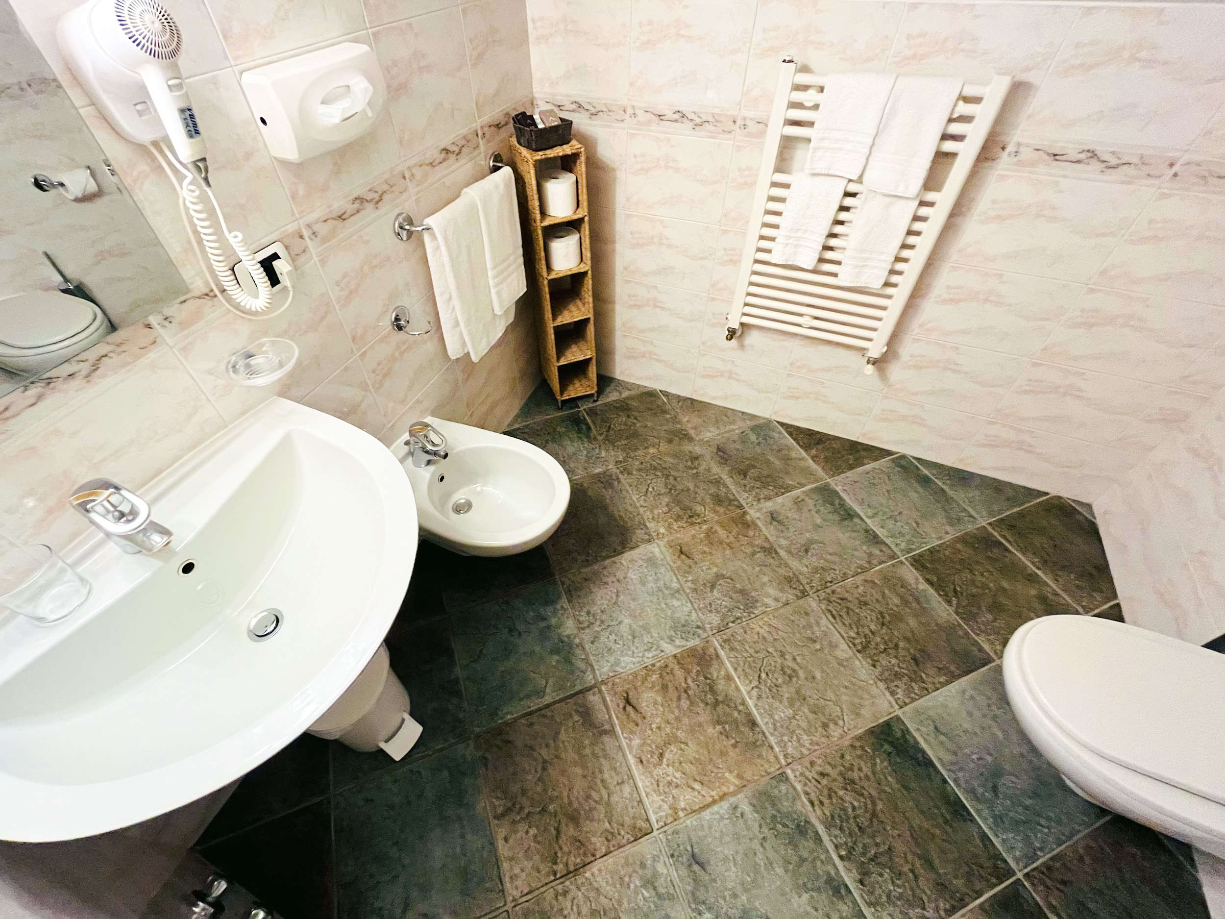 La camera tripla, con due letti e un divano letto, è la soluzione ideale per tre persone. La stanza, dotata di balcone ha una bellissima vista su Livigno, ed è arredata in legno e completa di ogni comfort: radio, Tv satellitare, telefono e cassaforte; servizi privati con doccia e vasca da bagno, asciugacapelli e scaldasalviette.