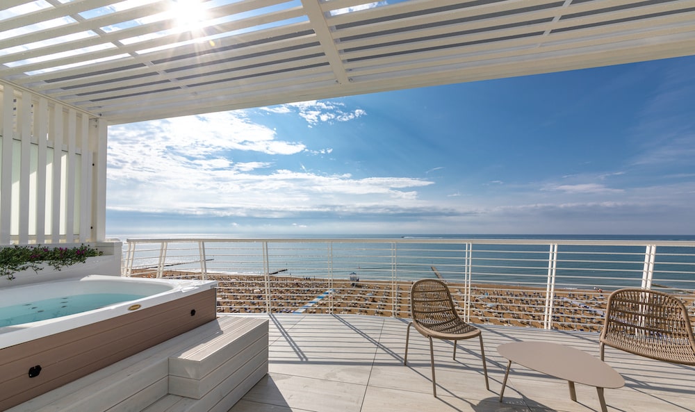 Ultimo piano, grande terrazza con Jacuzzi e vista mare laterale per godere del massimo relax.