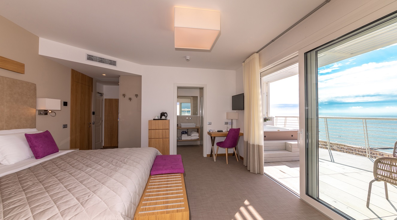 Ultimo piano, grande terrazza con Jacuzzi e vista fronte mare per godere di un panorama senza precedenti.