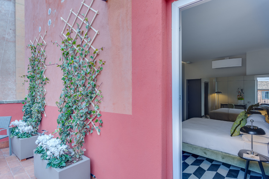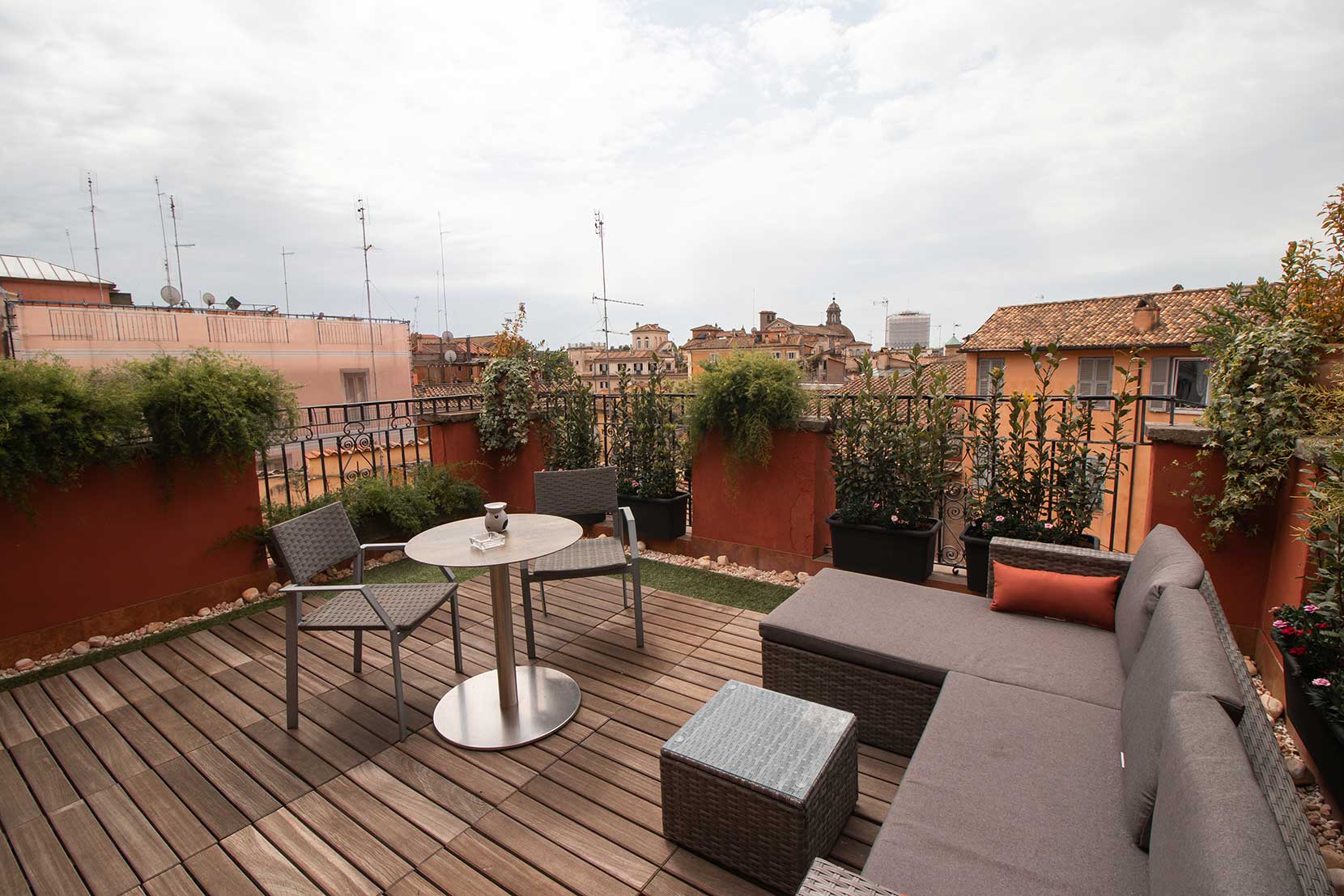 Camera situata all'ultimo piano (quinto), con meraviglioso terrazzo di 12mq, dotato di una vista mozzafiato su Roma, per apprezzare al meglio i tramonti della Città Eterna.