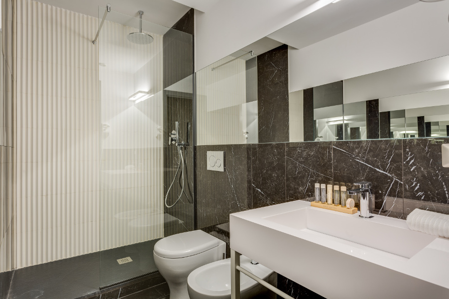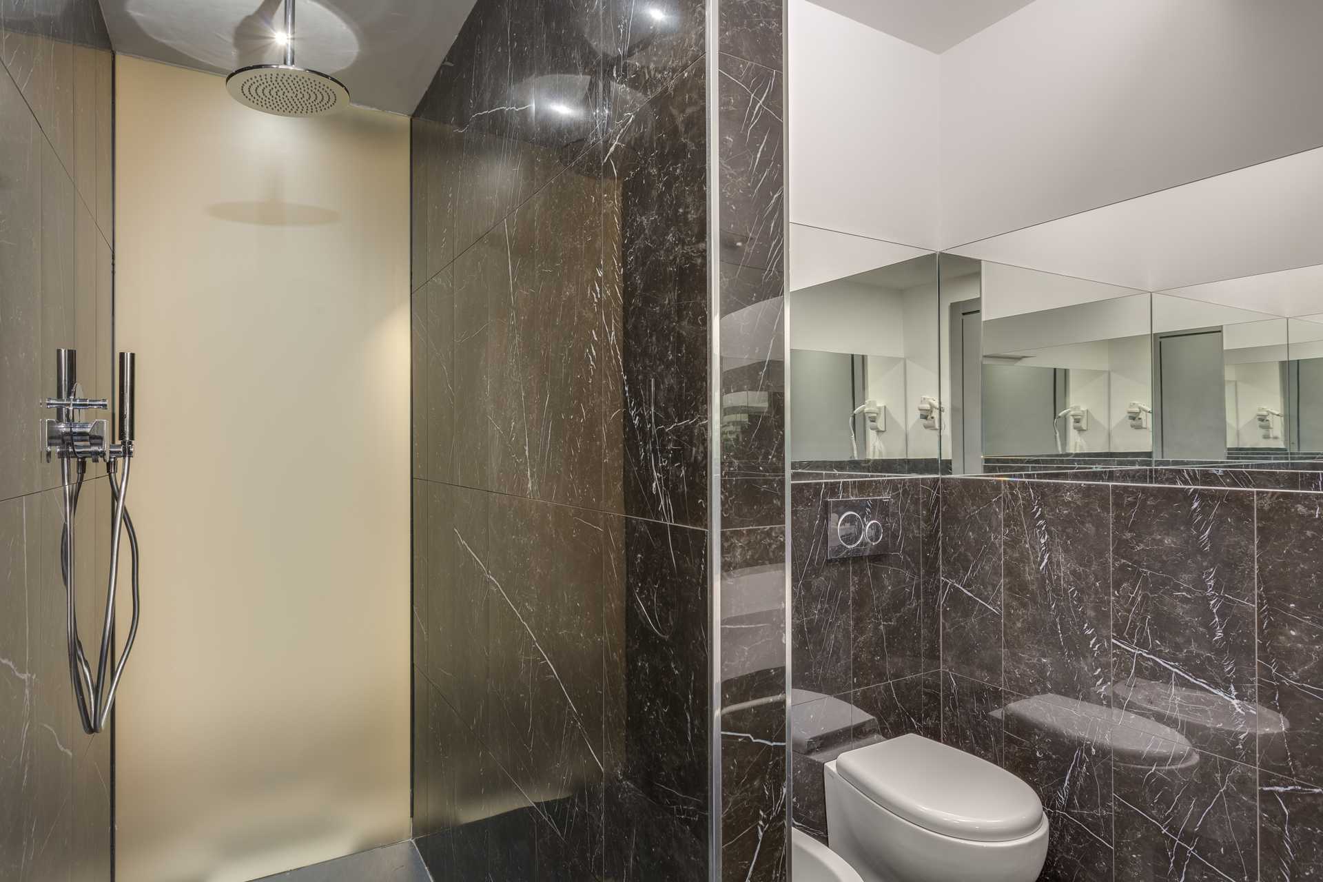 Elegantemente decorata e spaziosa per gli standard romani, questa camera con bagno privato e aria condizionata, armadio, scrittoio, cassaforte, TV LCD e set per la preparazione del caffè/tè offre un soggiorno comodo e adatto al riposo dopo le escursioni cittadine. Il bagno, con doccia, è anche provvisto di bidet, asciugacapelli, tappetino scendi-doccia e linea di cortesia omaggio.