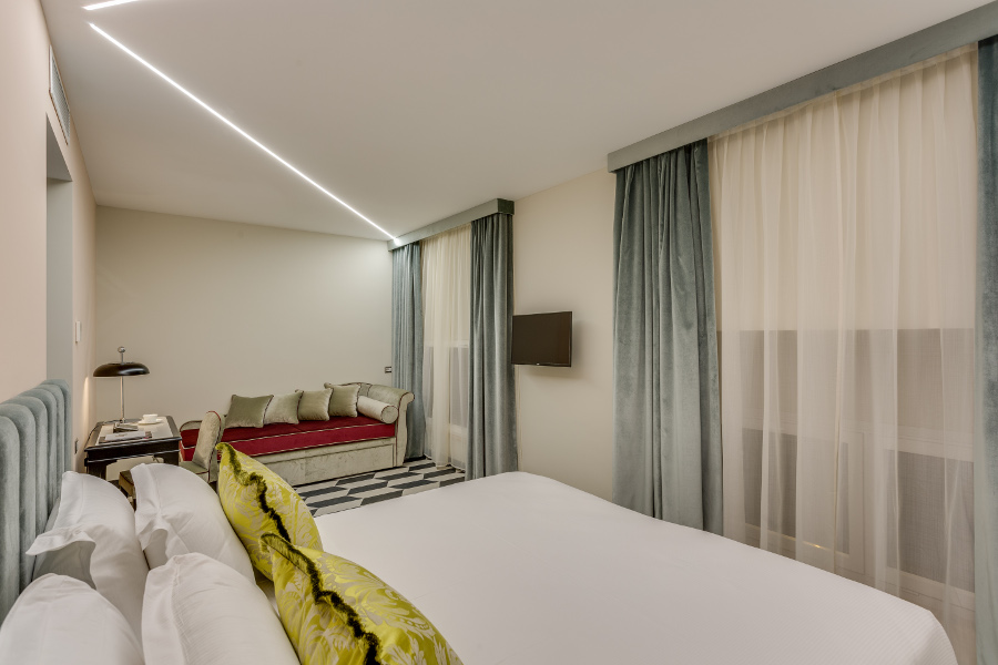 Uno dei punti forti della struttura, la Suite Interna vi accoglie con un ingresso ampio con divano e una piccola zona lounge. La camera da letto è ampia e arieggiata, con armadio, scrittoio, cassaforte, TV LCD e set per la preparazione del caffè/tè. Il bagno privato, con doccia e bidet, omaggia i suoi clienti con prodotti di cortesia, tappetino scendi-doccia, asciugacapelli e accappatoi inclusi. Gli ambienti sono dotati di aria condizionata.