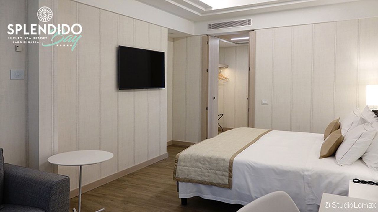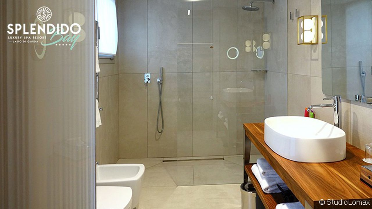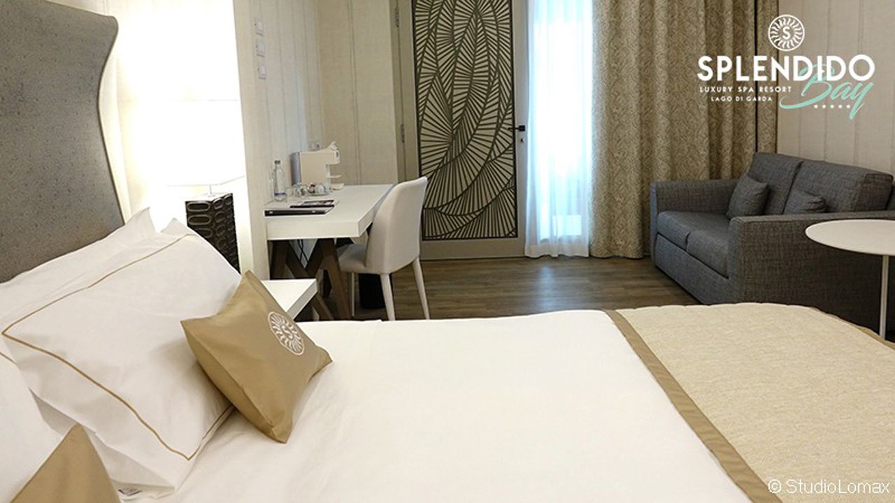 Le Junior Suite dispongono di un comodo letto per due persone con TV a schermo piatto, frigobar, macchina per caffè espresso, divano, cabina armadio ed un bagno con doccia. Tutte le camere si trovano all'esterno nel nostro parco ed hanno un portico con un grazioso giardino arredato con sedie e tavolino da esterno.