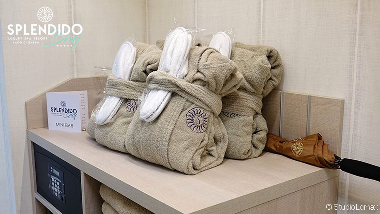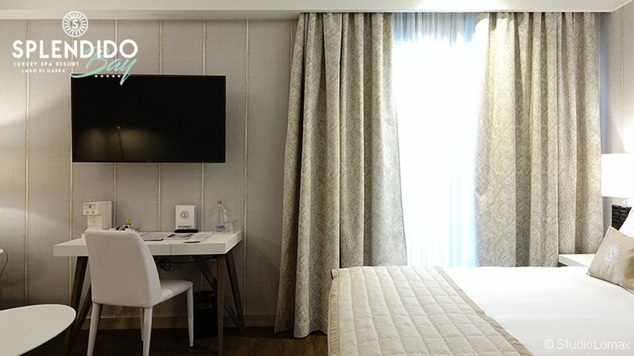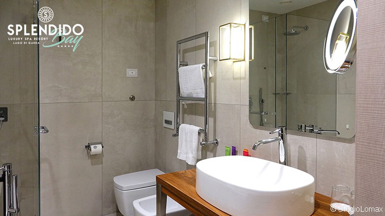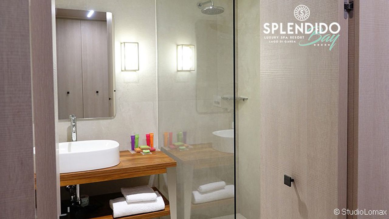 Le Junior Suite dispongono di un comodo letto per due persone con TV a schermo piatto, frigobar, macchina per caffè espresso, divano, cabina armadio ed un bagno con doccia. Tutte le camere si trovano all'esterno nel nostro parco ed hanno un portico con un grazioso giardino arredato con sedie e tavolino da esterno.