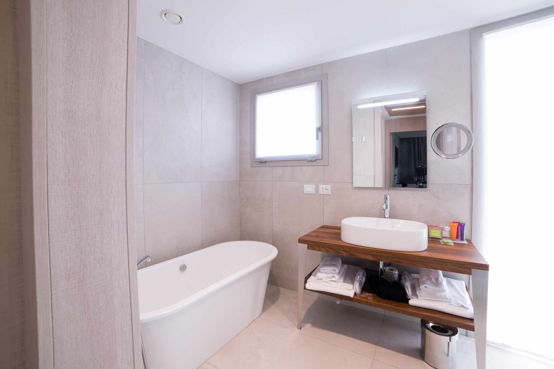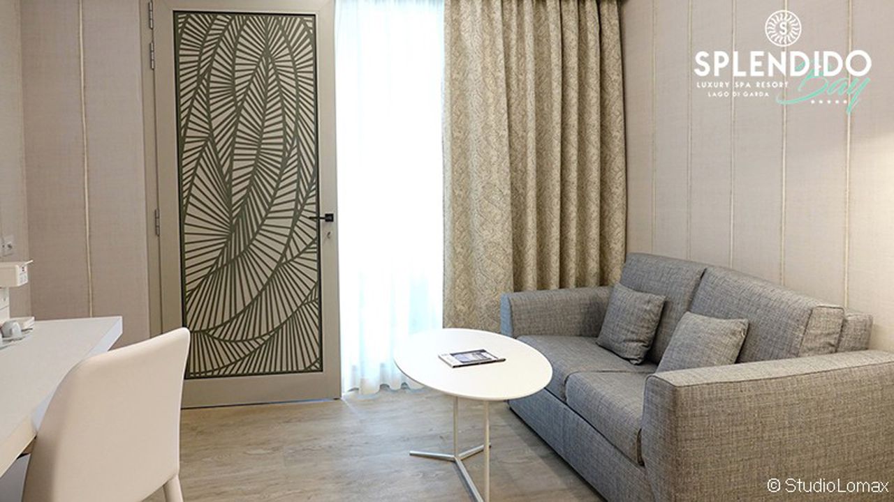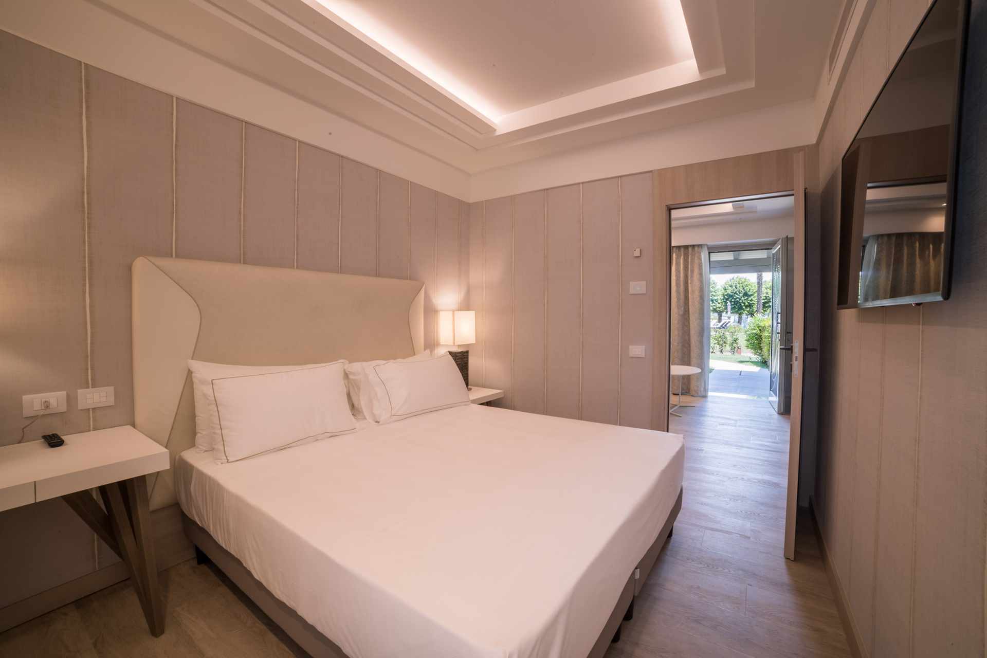 Le Junior Suite dispongono di un comodo letto per due persone con TV a schermo piatto, frigobar, macchina per caffè espresso, divano, cabina armadio ed un bagno con vasca o doccia. Tutte le camere hanno un portico con un grazioso giardino arredato con sedie e tavolino da esterno.