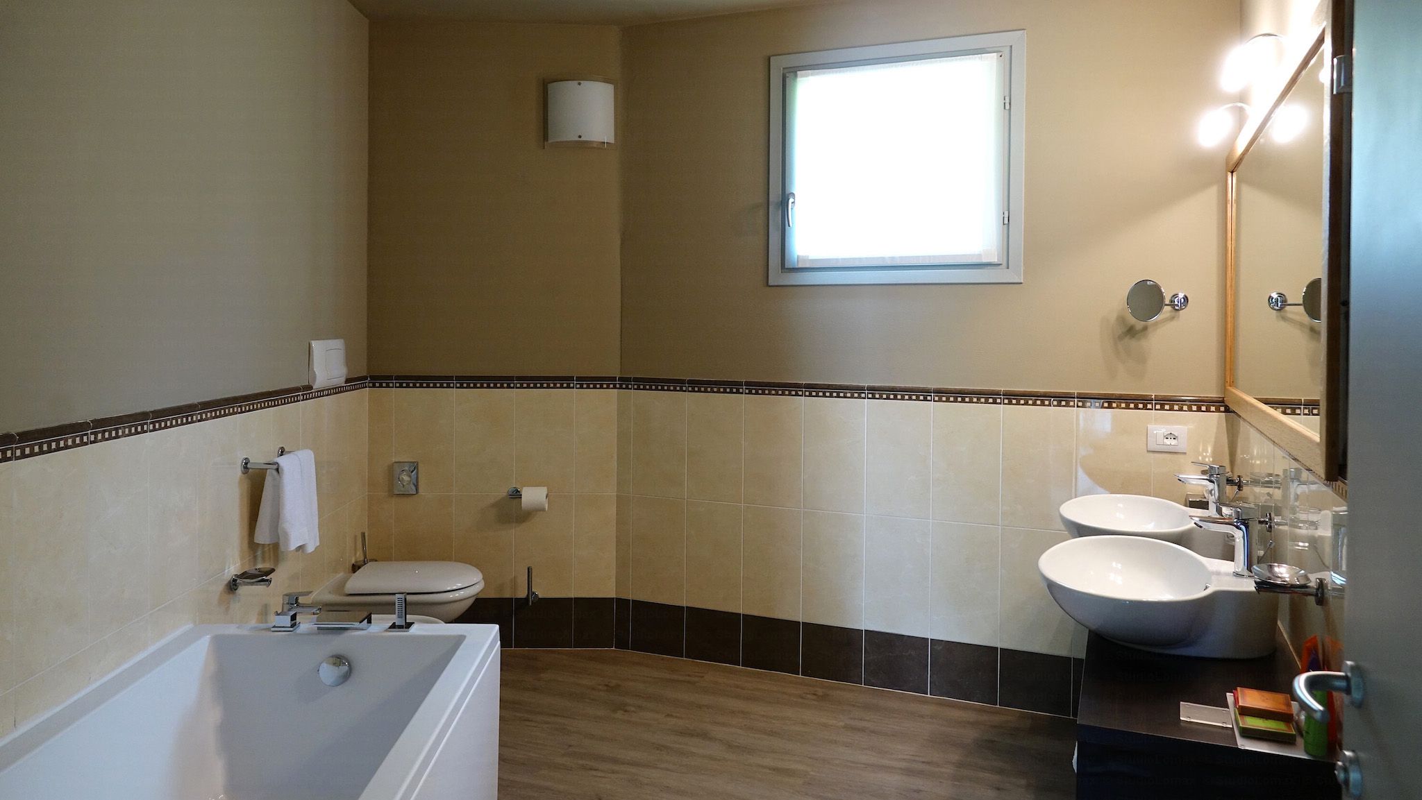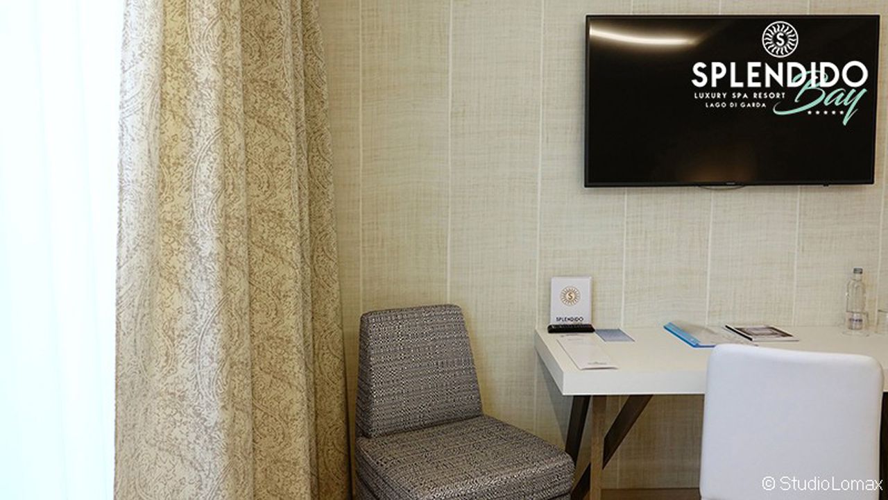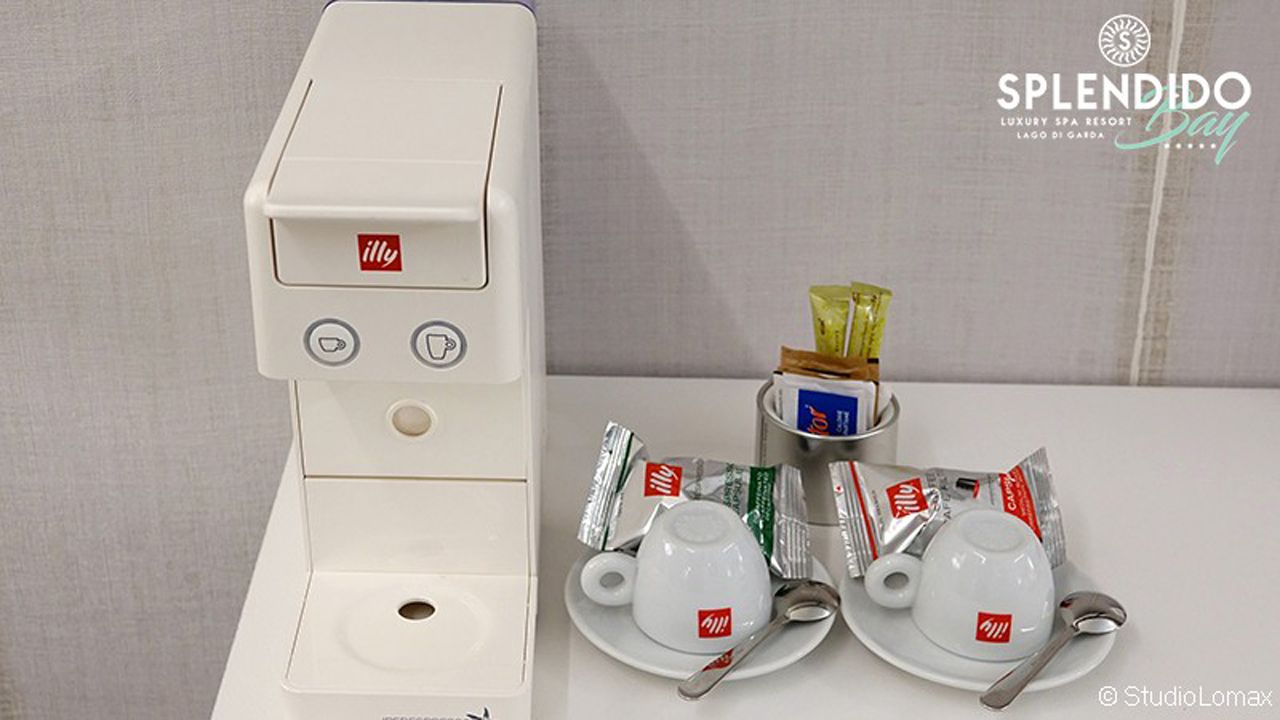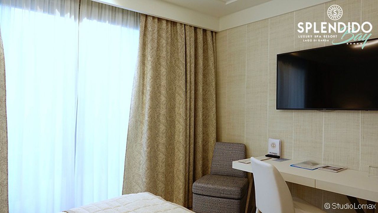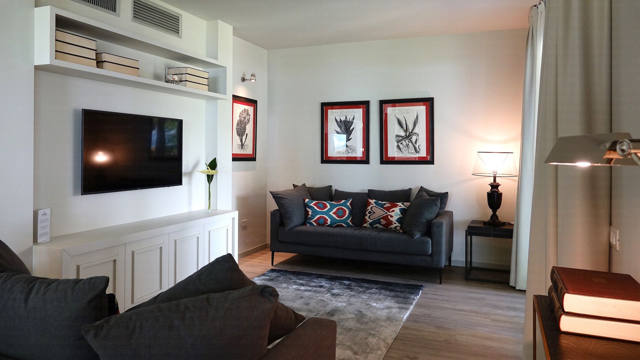 Le Executive Suite sono dotate di due camere da letto con letto matrimoniale, due bagni, un comodo living/salottino con un sofà che all'occorrenza può trasformarsi in letto, Tv a schermo piatto, frigobar e macchina per caffè espresso. Le camere si trovano all'esterno nel nostro parco e sono dotate di un portico con giardino, per godere della vista sul lago, comodamente seduti sulle poltrone.