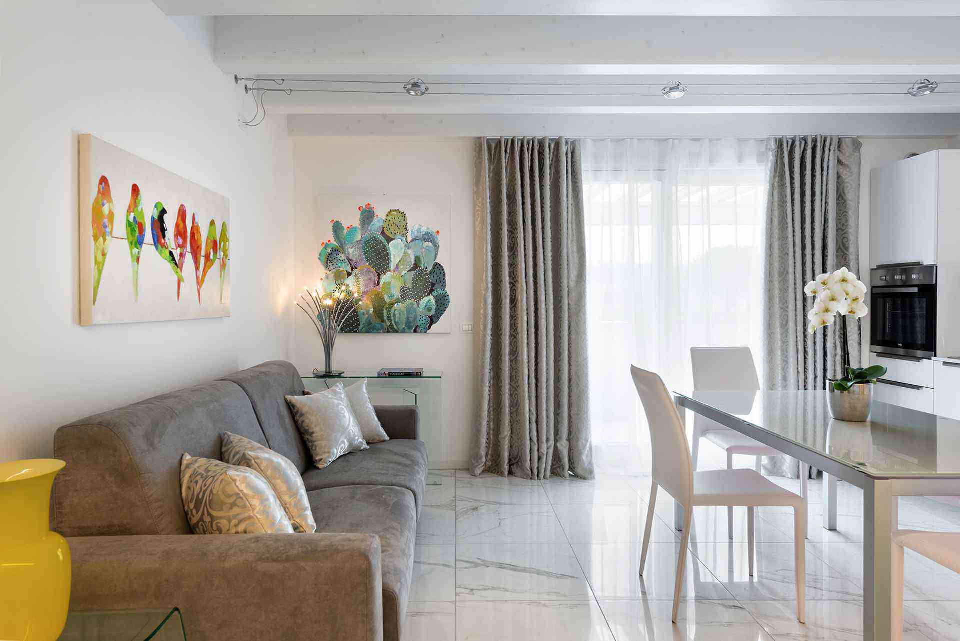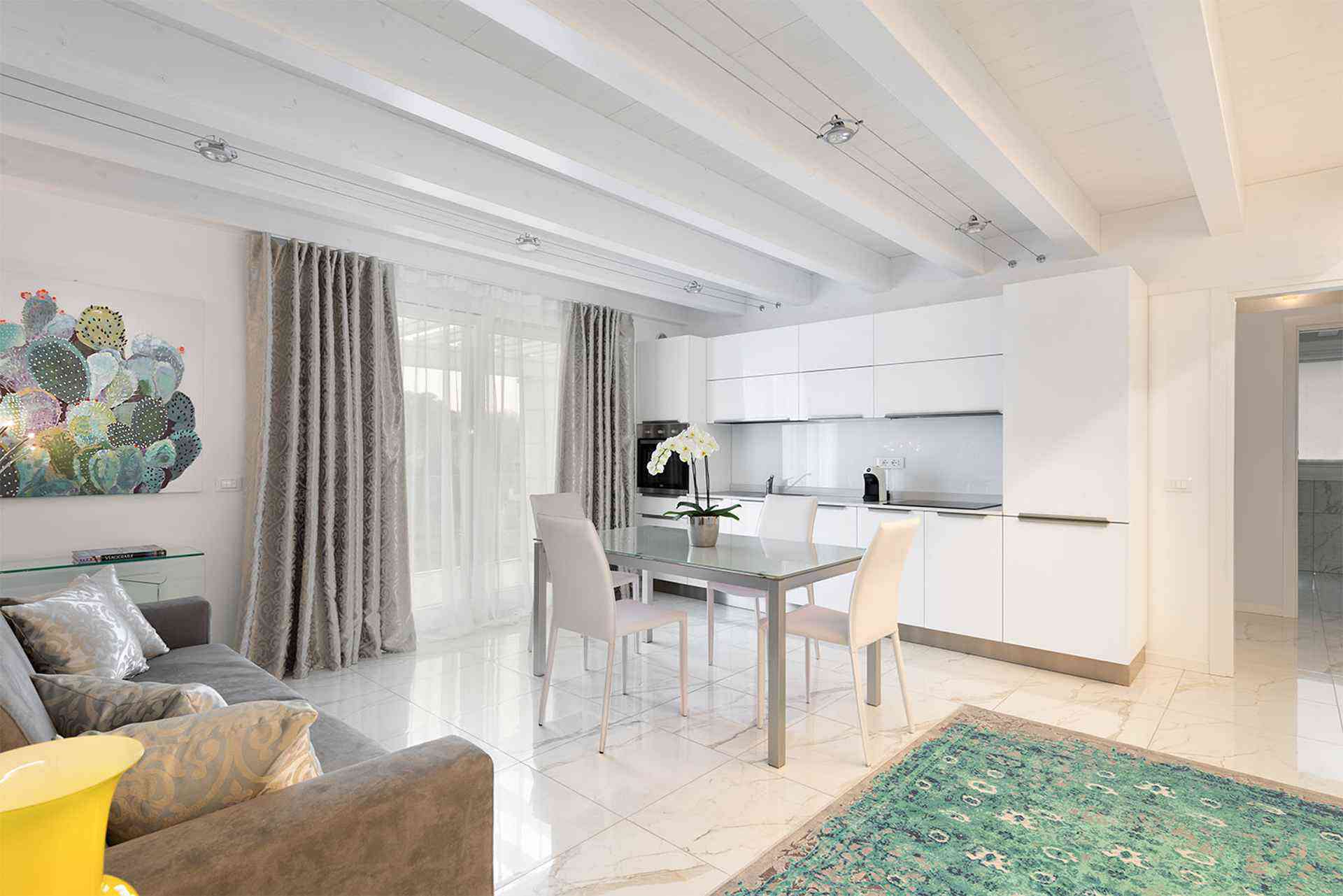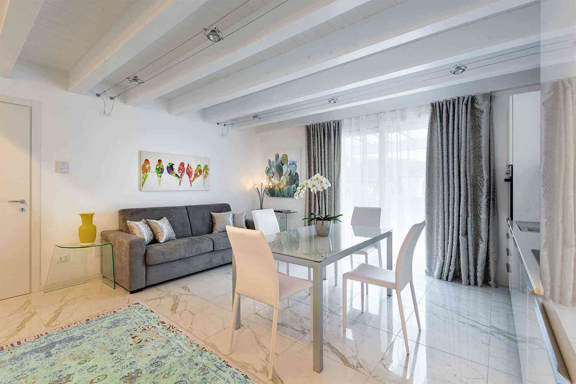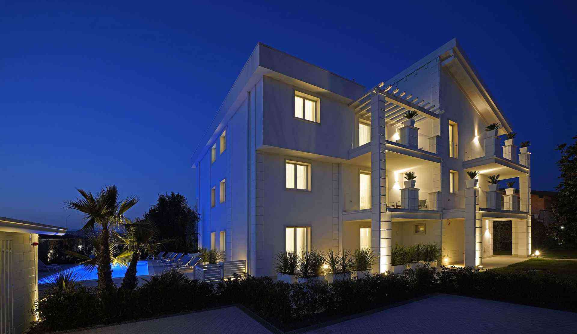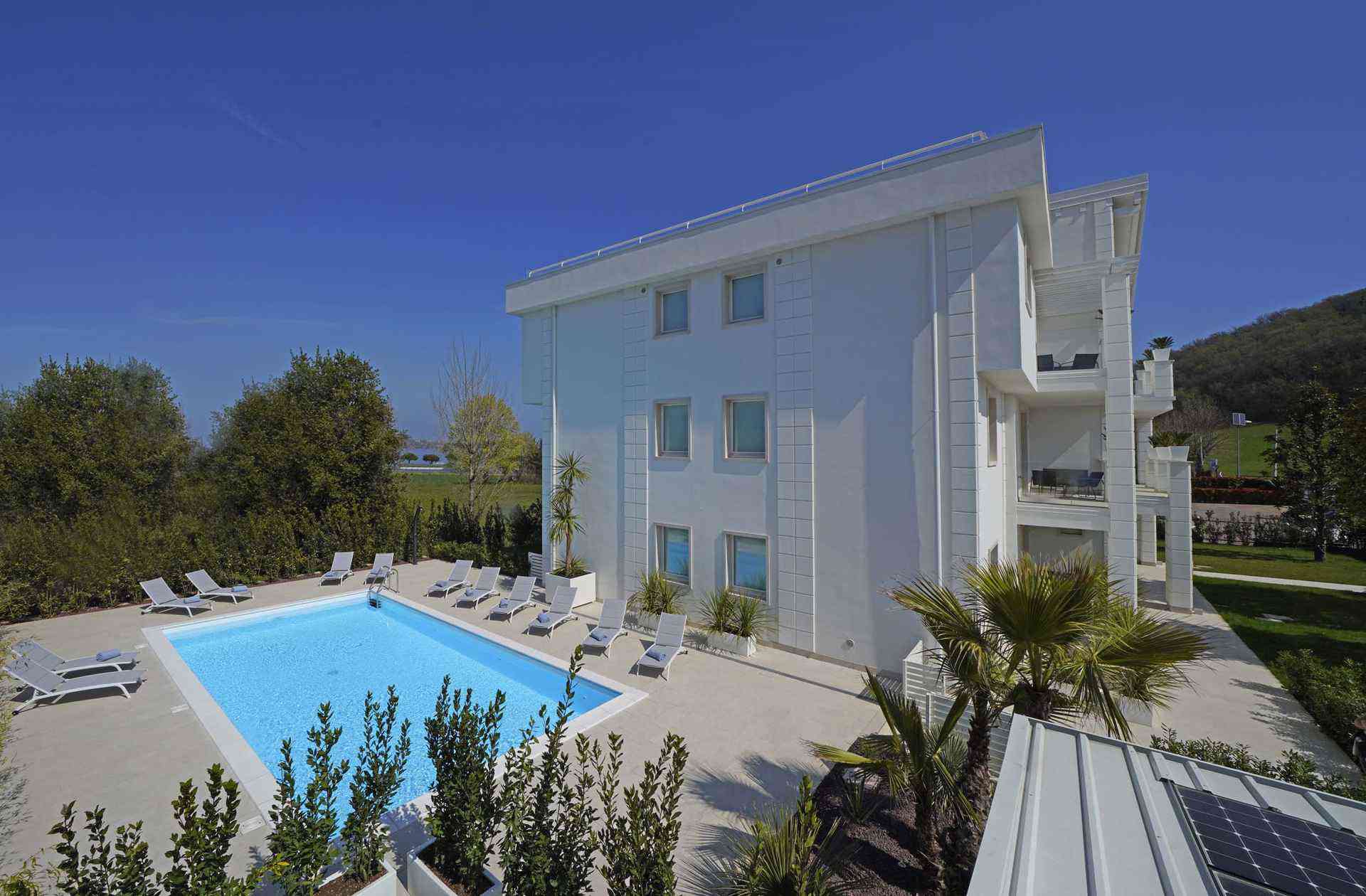 Lussuoso appartamento di nuovissima realizzazione arredato con gusto e design.Si trova a 500 metri dal Hotel in un'elegante Villa con piscina privata e solarium all'ultimo piano. L' Appartamento è provvisto di ogni comfort e vanta di una spaziosa terrazza esterna arredata - Parcheggio privato.