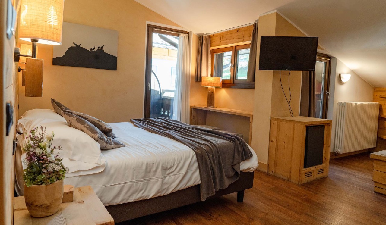 Strategically positioned to offer unparalleled views of the Vallecetta mountain or the beautiful Reit, these rooms are the favourite choice for those who want to immerse themselves in the panoramas of Alta Valtellina. Most of the rooms have a large balcony, perfect for relaxing and enjoying the natural beauty that surrounds Bormio, for an unparalleled visual and emotional experience.
