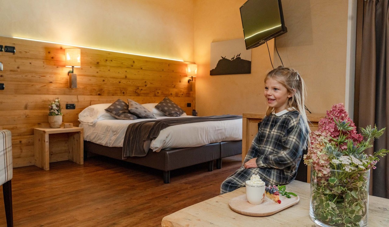 They are also equipped with modern amenities such as satellite TV, Wi-Fi, safe, minibar and hairdryer. Ideal for couples, single travellers, groups of friends or families, our Standard rooms are the perfect solution for those seeking a cosy mountain retreat.