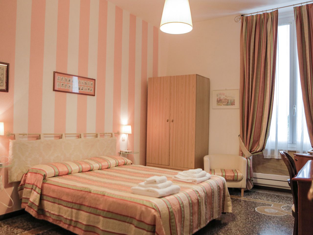 Cette grande chambre dispose d'une salle de bains privative et d'un balcon privé offrant une vue panoramique. Dotée d'un mobilier d'époque et d'un sol en marbre, elle est équipée de la climatisation, d'une télévision et d'un minibar. Un panier de bienvenue avec des fruits frais et une bouteille de vin vous seront offerts.Superficie : 20 m² Lit : 1 très grand lit double Équipements: balcon, téléphone, télévision à écran plat, coffre-fort, climatisation, bureau, très grands lits (> 2 mètres de long), chauffage, insonorisation, sol carrelé / en marbre, armoire / penderie, sèche-cheveux, articles de toilette gratuits, toilettes, salle de bains, baignoire ou douche, minibar